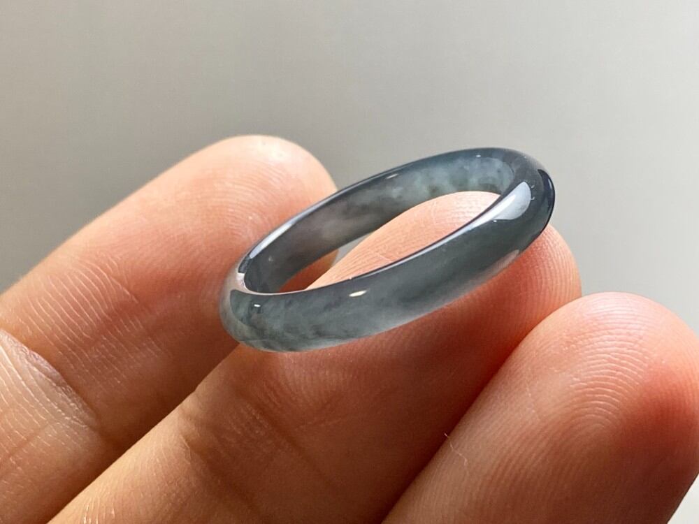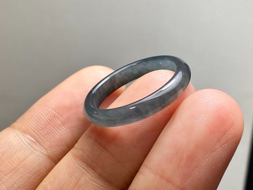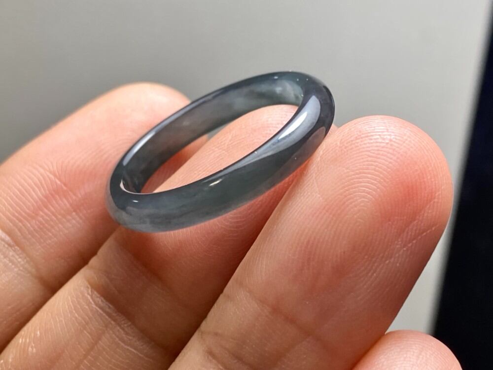 L12-138 氷種 高級感 黒翡翠 18.5号 天然グアテマラ産 A貨 本翡翠 くりぬき リング