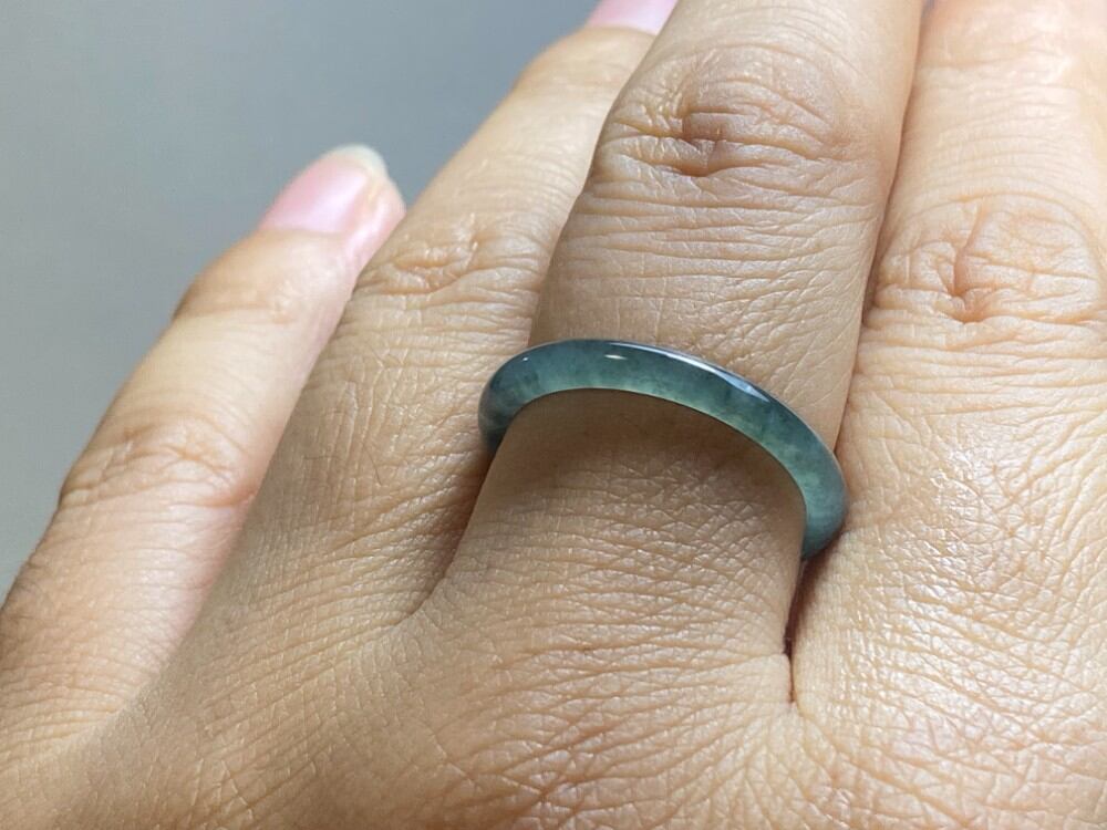 L12-137 細身 氷種 高級感 黒翡翠 16.5号 天然グアテマラ産 A貨 本翡翠 くりぬき リング