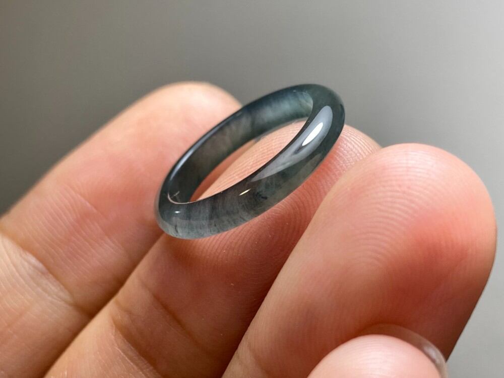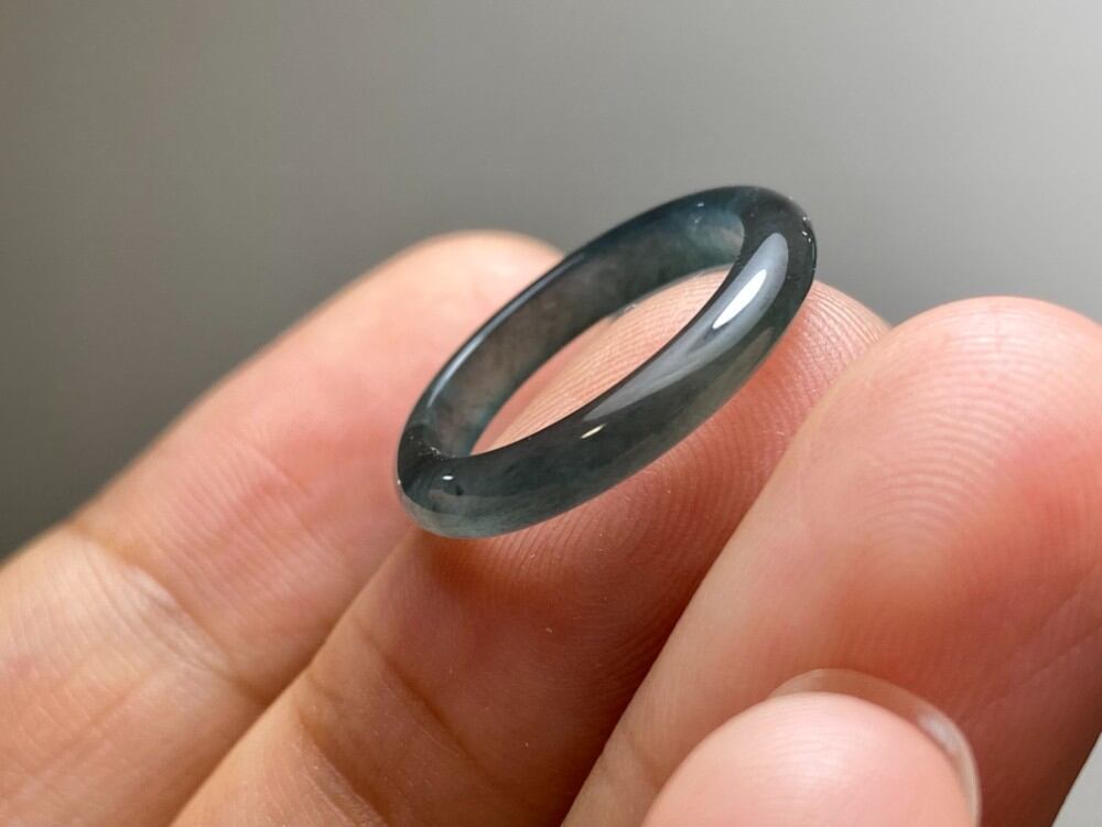 L12-133 極品 細身 ピンキーリング 高氷種 黒翡翠 6.0号 天然グアテマラ産 A貨 本翡翠 くりぬき リング