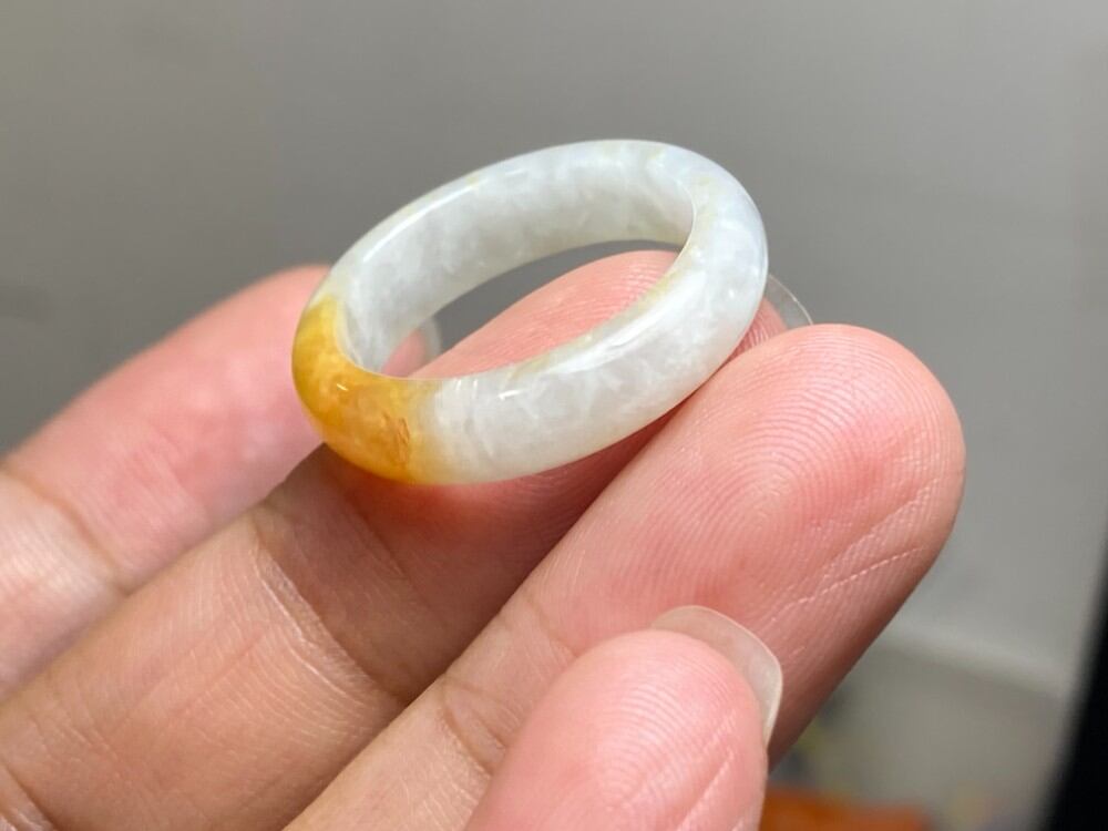 L12-161 美品 黄翡翠 17.0号 ミャンマー産天然 A貨 本翡翠 くりぬき リング