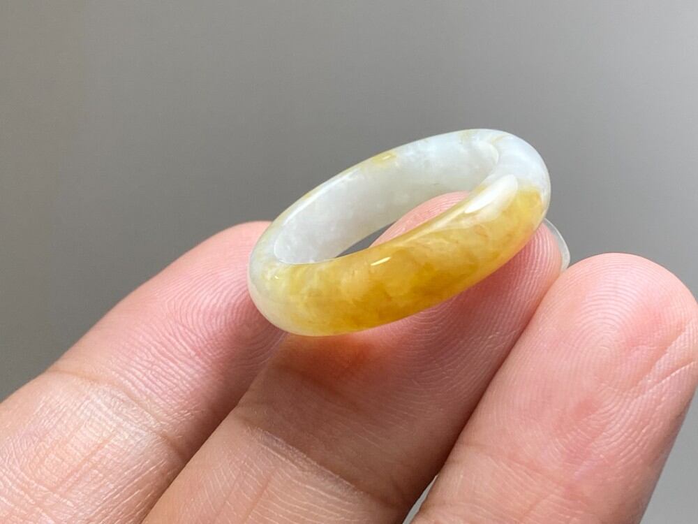 L12-160 美品 黄翡翠 17.0号 ミャンマー産天然 A貨 本翡翠 くりぬき リング
