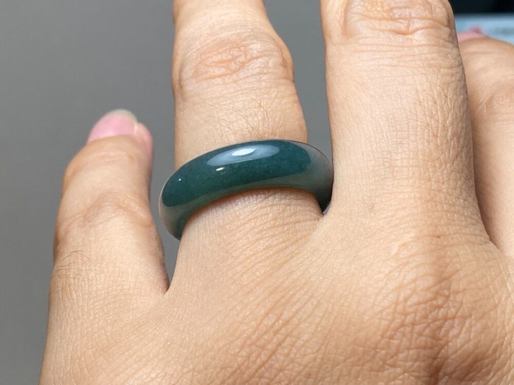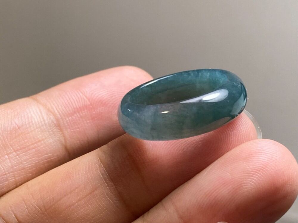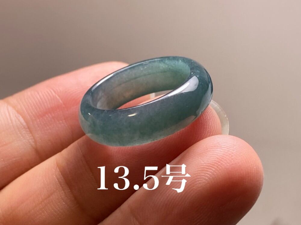 L12-164 氷糯種 灰藍 13.5号 天然グアテマラ産 A貨 本翡翠 くりぬき リング
