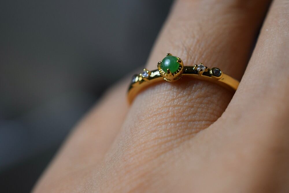 RG10-66 一点物 宝石質 ミニ ミャンマー産 果緑 本翡翠 ヒスイ 指輪 フリーサイズ 金属アレルギー対応