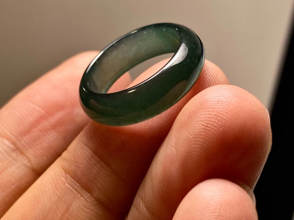 L12-178 ピンキーリング 氷種 氷青緑 7.5号 天然グアテマラ産 A貨 本翡翠 くりぬき リング
