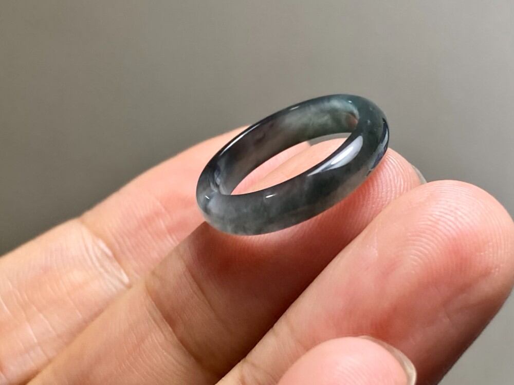 L12-175 氷種 高級感 黒翡翠 8.0号 天然グアテマラ産 A貨 本翡翠 くりぬき リング