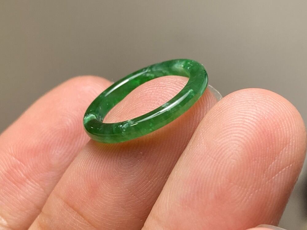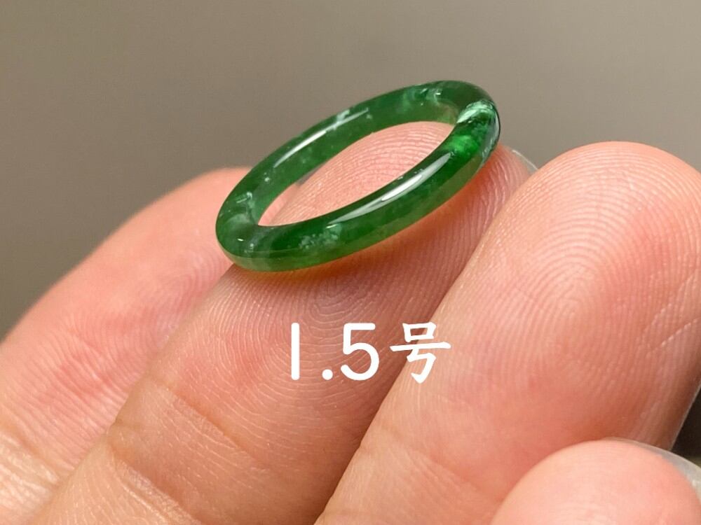 L12-195 極品 細身 ピンキーリング 高氷種 濃陽緑 1.5号 天然グアテマラ産 A貨 本翡翠 くりぬき リング