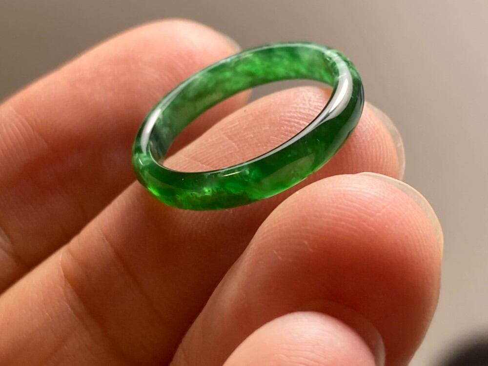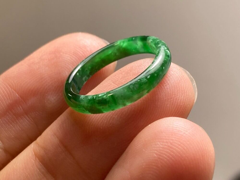L12-205 極品 ピンキーリング 高氷種 濃陽緑飃雪花 7.5号 天然グアテマラ産 A貨 本翡翠 くりぬき リング