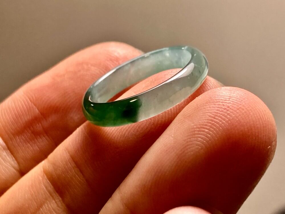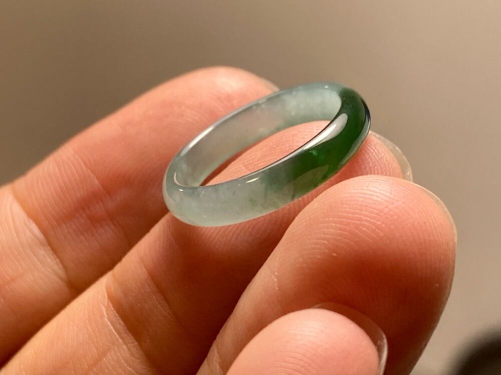 L12-201 氷糯種 灰青/濃緑 7.5号 天然グアテマラ産 A貨 本翡翠 くりぬき リング