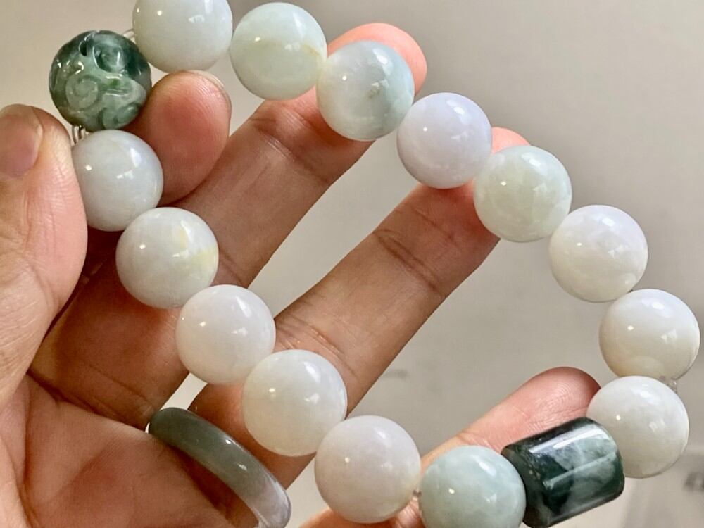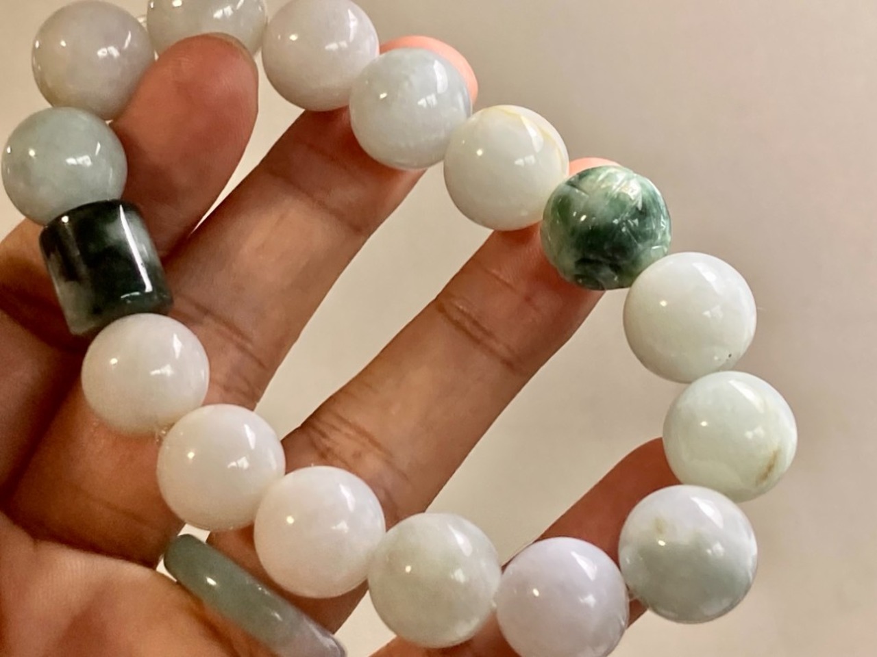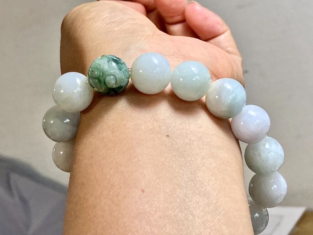 BR7-34 大粒 彫り花 団花珠 13.5mm ミャンマー産 天然本翡翠 ブレスレット