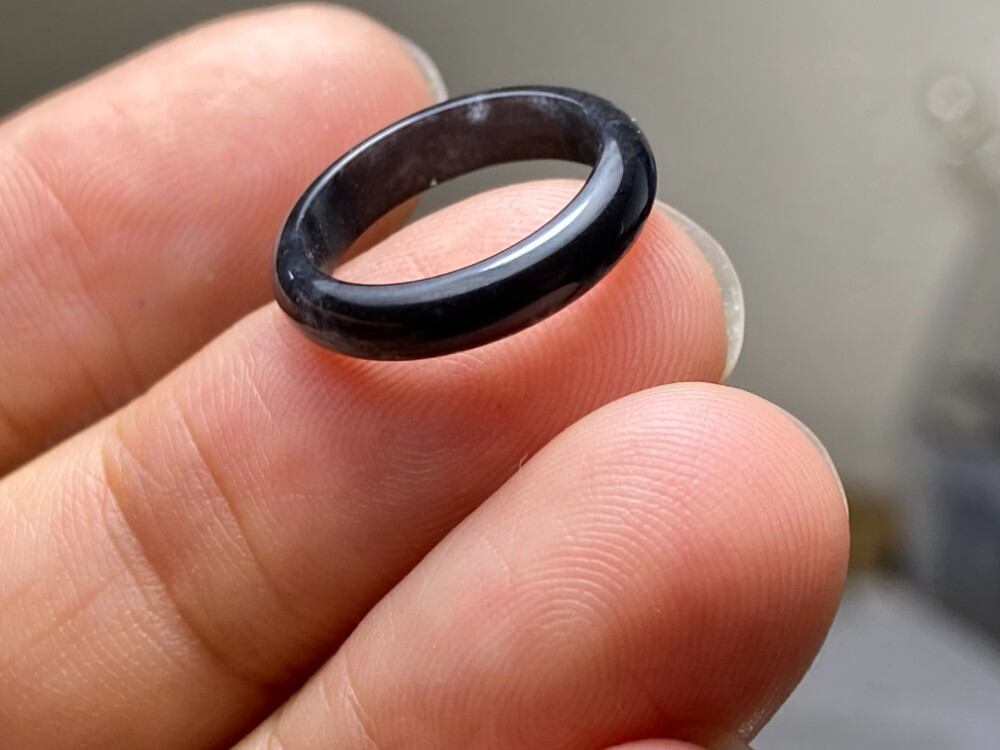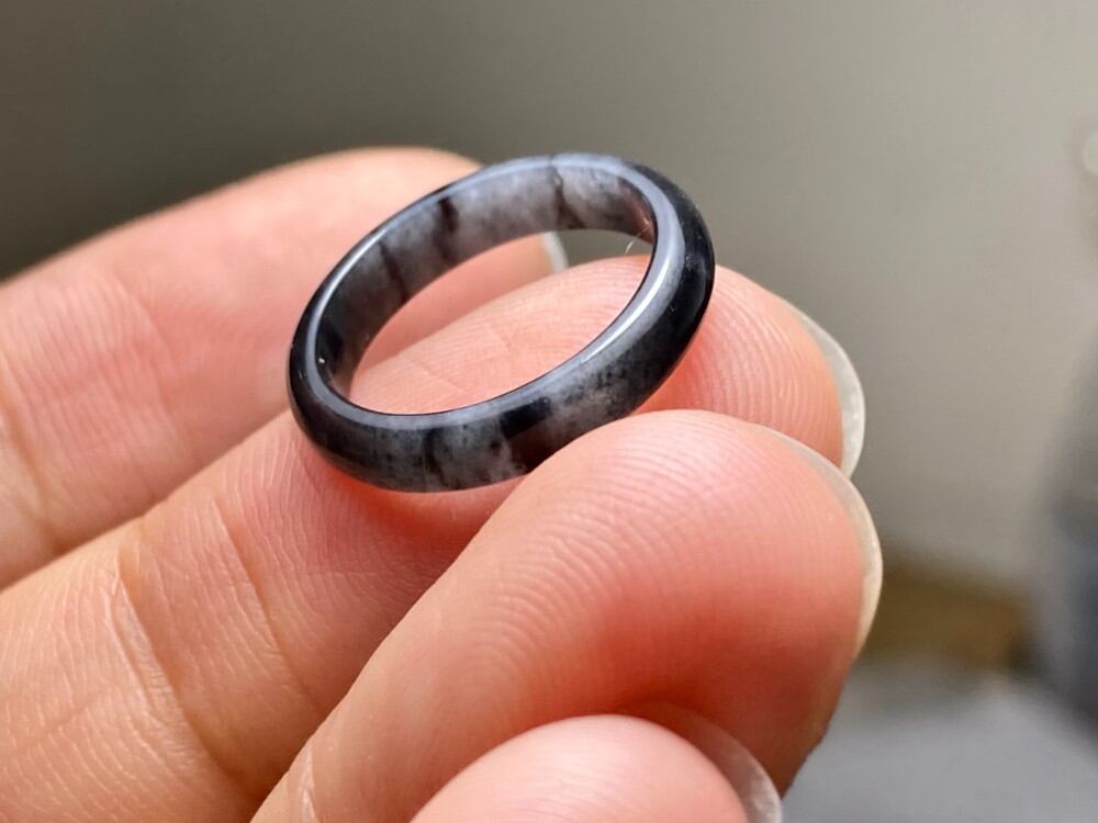 L12-206 ピンキーリング 糯氷種 黒翡翠 1.0号 グアテマラ産 A貨 本翡翠 くりぬき リング