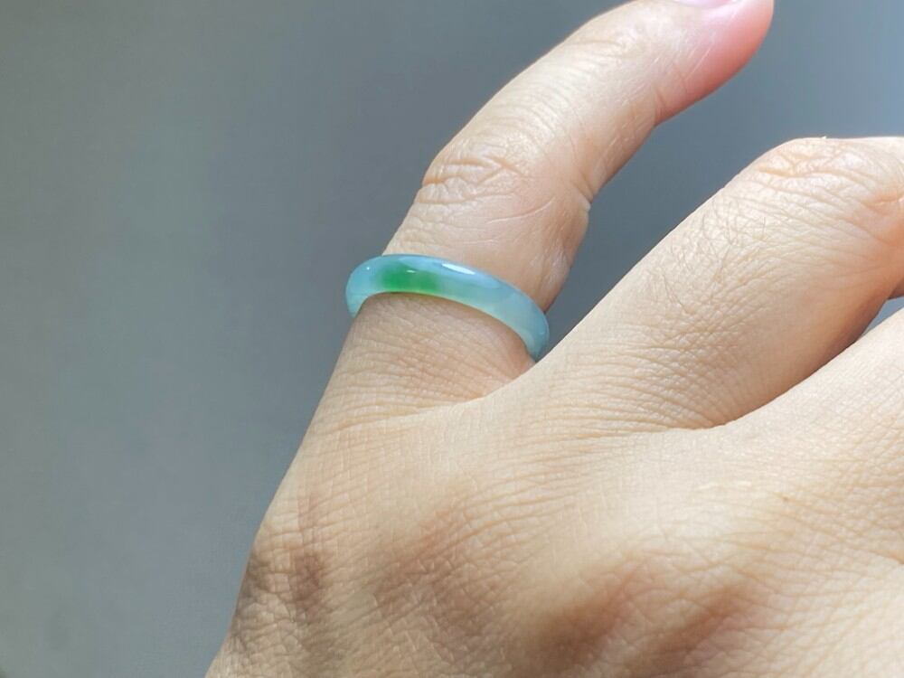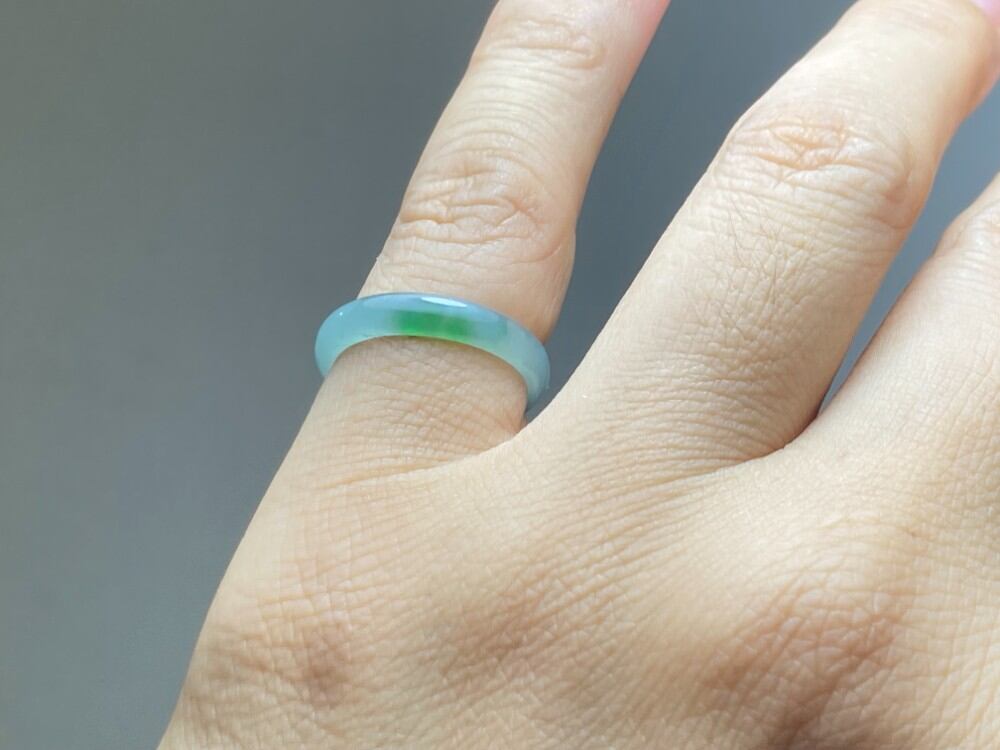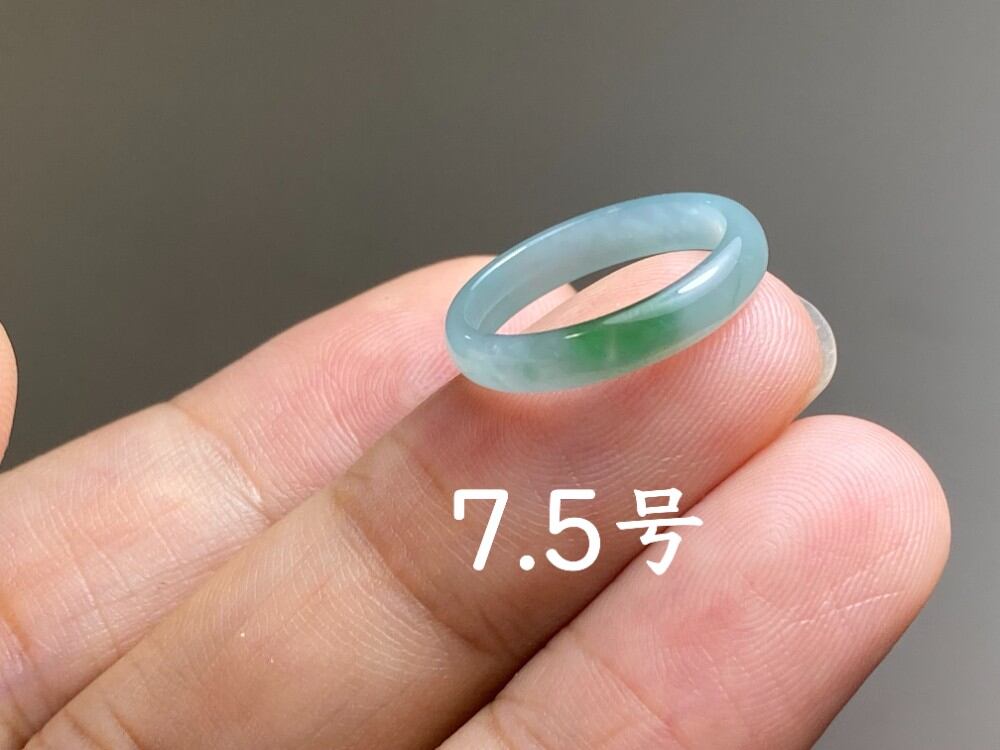 L12-210 ピンキーリング 氷糯種 青底暗緑 7.5号 グアテマラ産 A貨 本翡翠 くりぬき リング