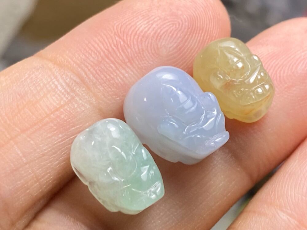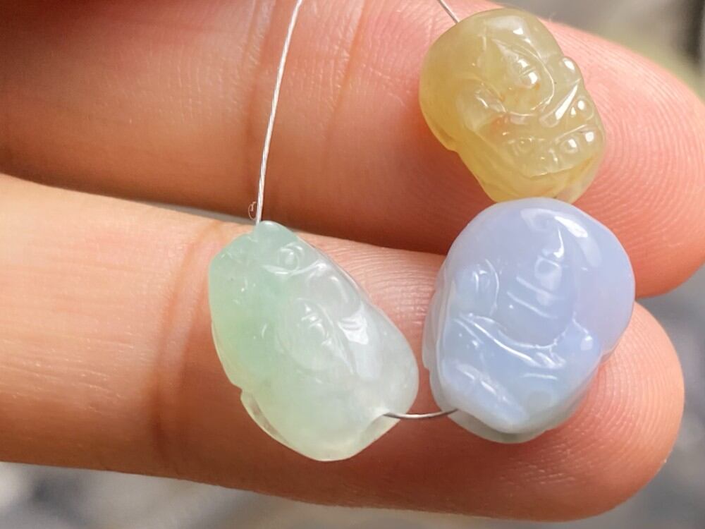 3点セット通穴 貔貅 本翡翠 ミャンマー産 A貨 財布貔貅 御守、一点物です
