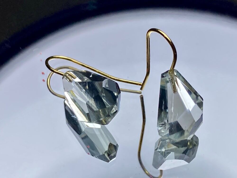 P22 一点物 希少石 天然 緑水晶 グリーン アメシスト 大粒 ピアス 金属アレルギー対応