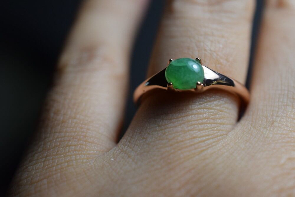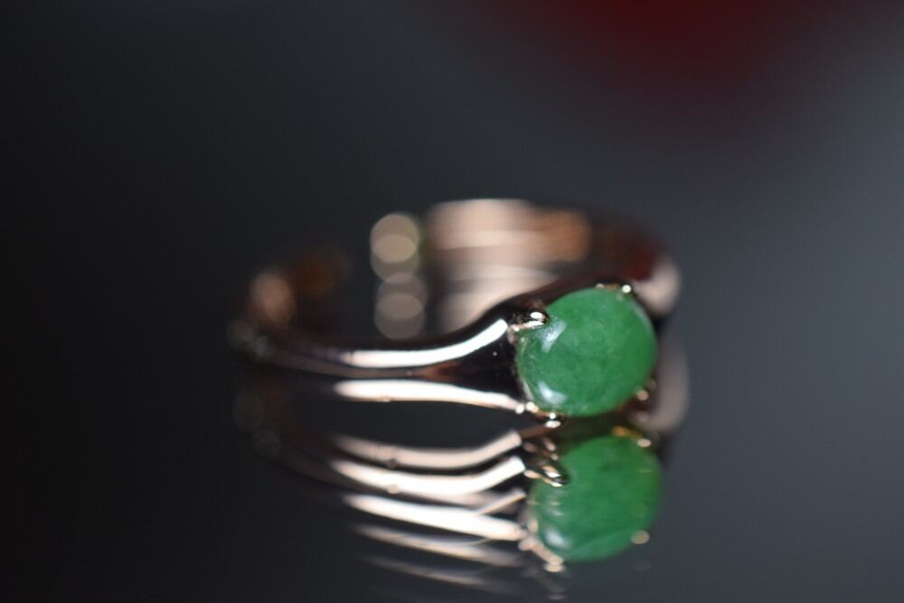 RG10-67 一点物 ミャンマー産 果陽緑 本翡翠 ヒスイ 指輪 フリーサイズ 金属アレルギー対応