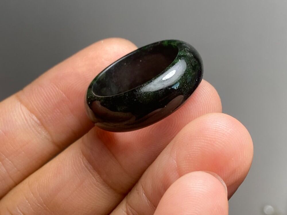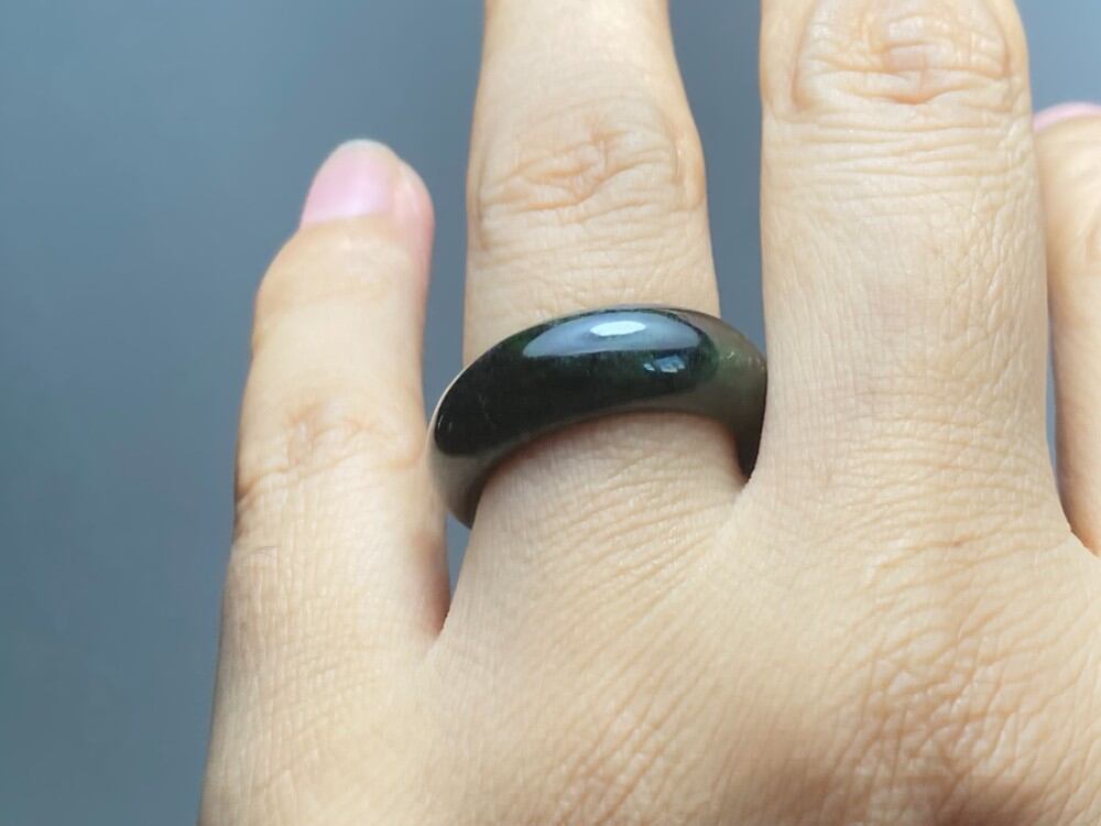 L11-248 一点物 黒緑 13.5号 ミャンマー産天然 A貨 本翡翠 くりぬき リング
