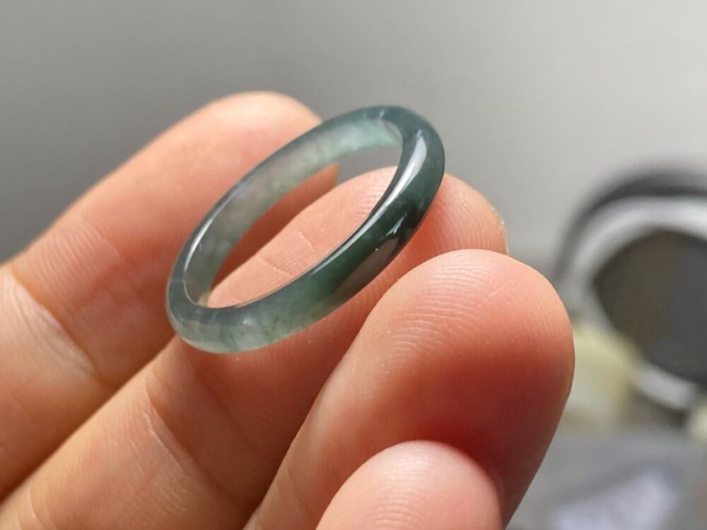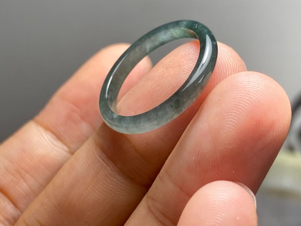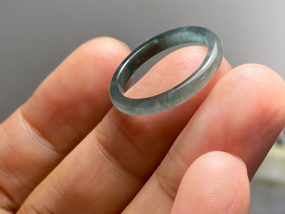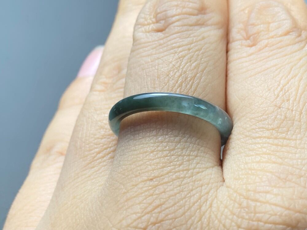 L13-08 氷種 高級感 黒翡翠 16.5号 グアテマラ産 A貨 本翡翠 くりぬき リング