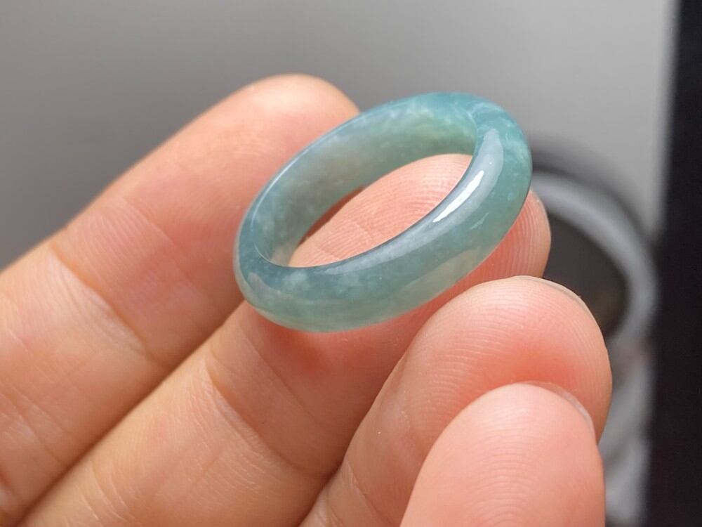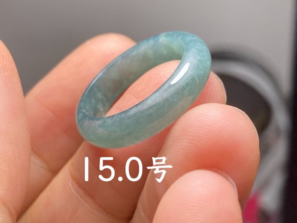 L13-15 氷糯種 青色 15.0号 グアテマラ産 A貨 本翡翠 くりぬき リング
