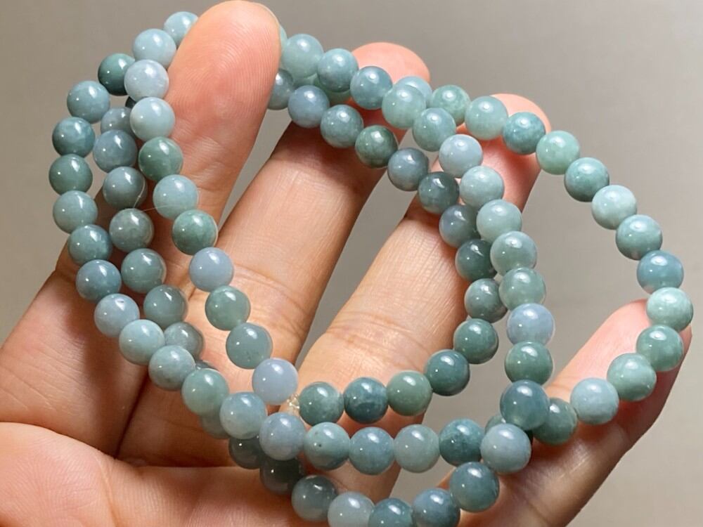 BR7-39 三連 糯種 青灰色 6.0mm グアテマラ産 天然 本翡翠 ブレスレット