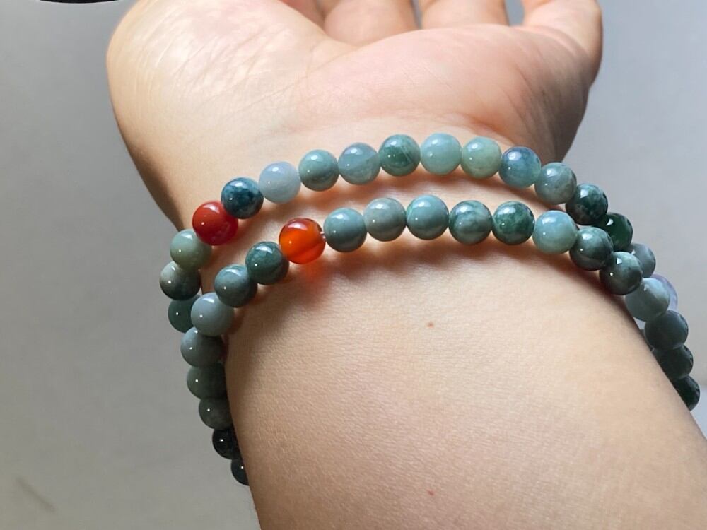 BR7-38 一点物 瑪瑙 メノウ 本翡翠 糯種 ヒスイ 平安守り 玉壁 グアテマラ産 ブレスレット