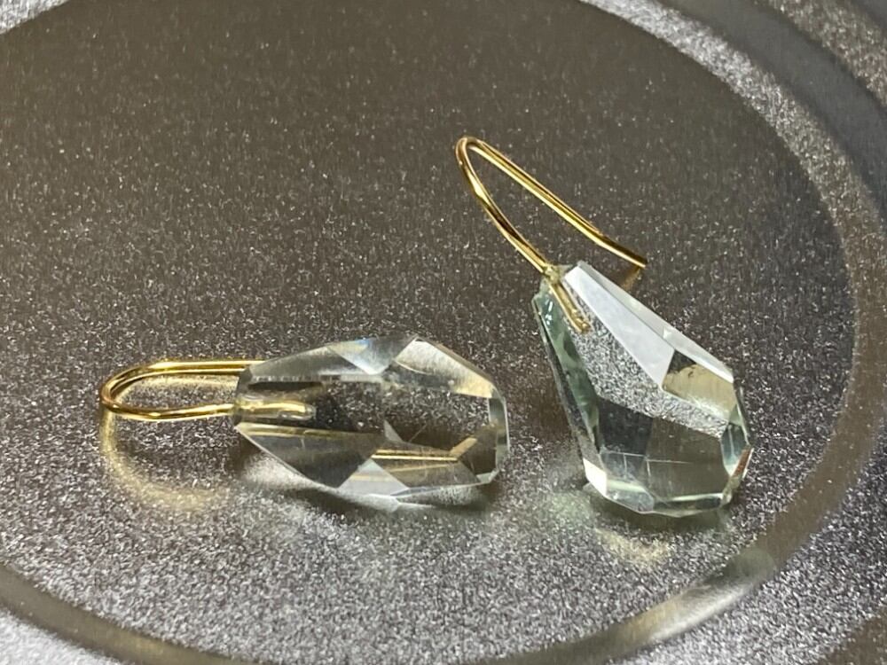 P24 一点物 希少石 天然 緑水晶 グリーン アメシスト 大粒 ピアス 金属アレルギー対応