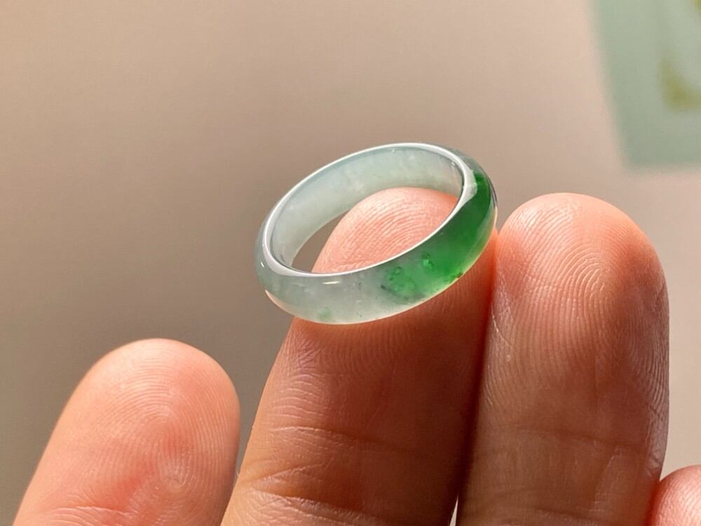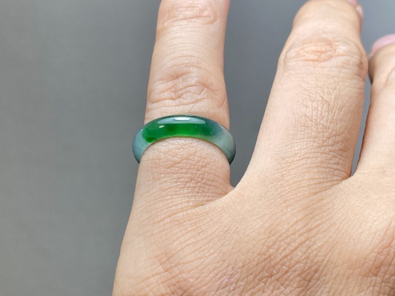 L13-37 ピンキーリング 氷種 深緑 4.5号 グアテマラ産 A貨 本翡翠 くりぬき リング