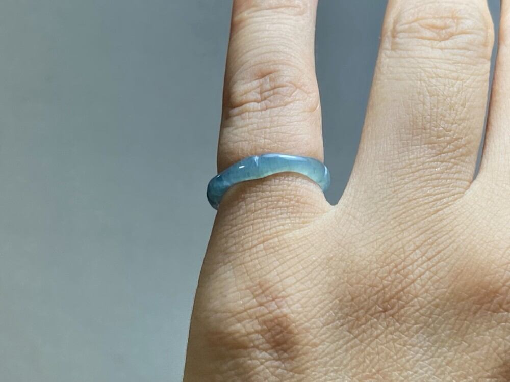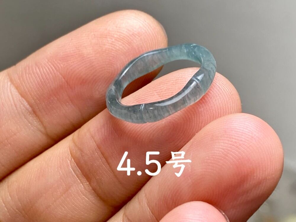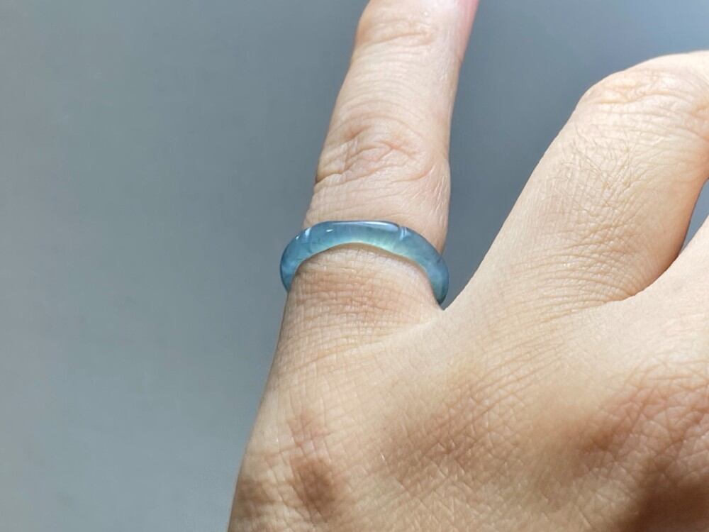 L13-54 ピンキーリング 氷種 竹節 リング 青灰色 4.5号 グアテマラ産 A貨 本翡翠 くりぬき