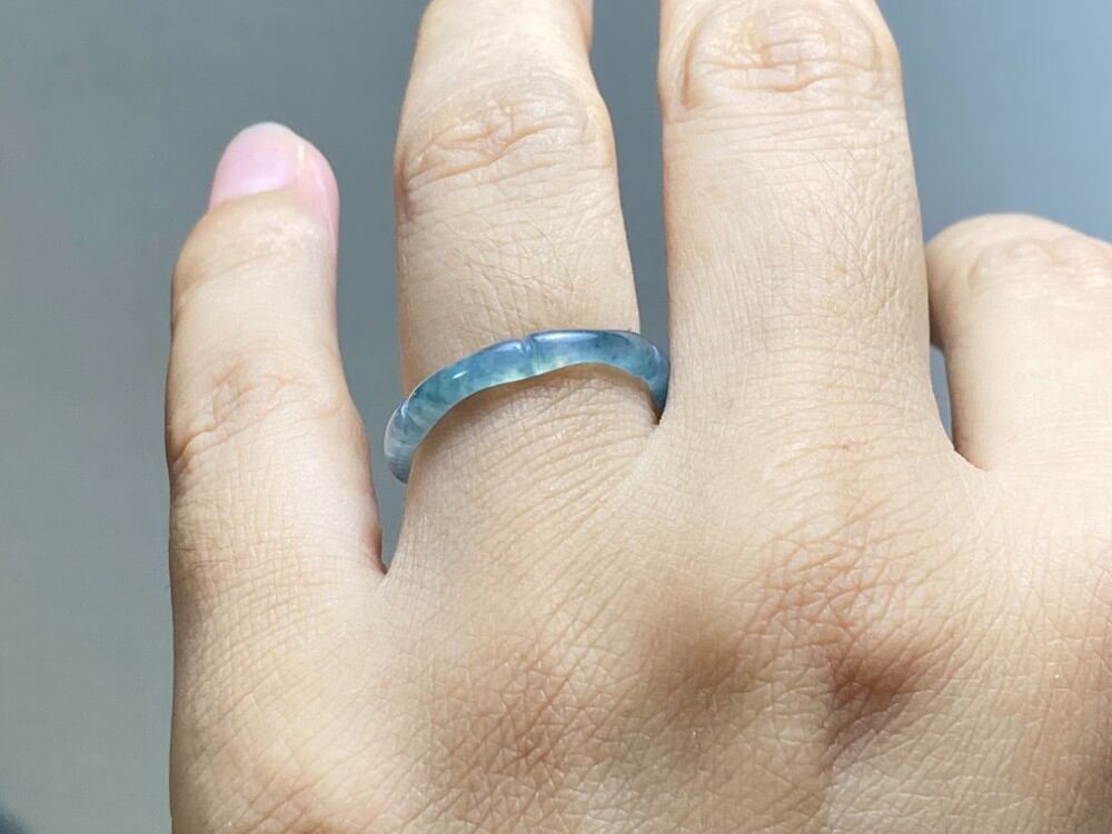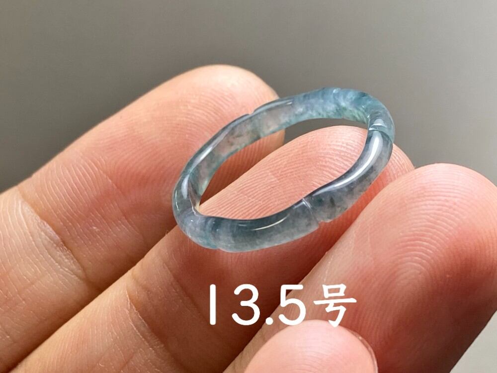 L13-53 高氷種 竹節 リング 水色飃青花 13.5号 グアテマラ産 A貨 本翡翠 くりぬき