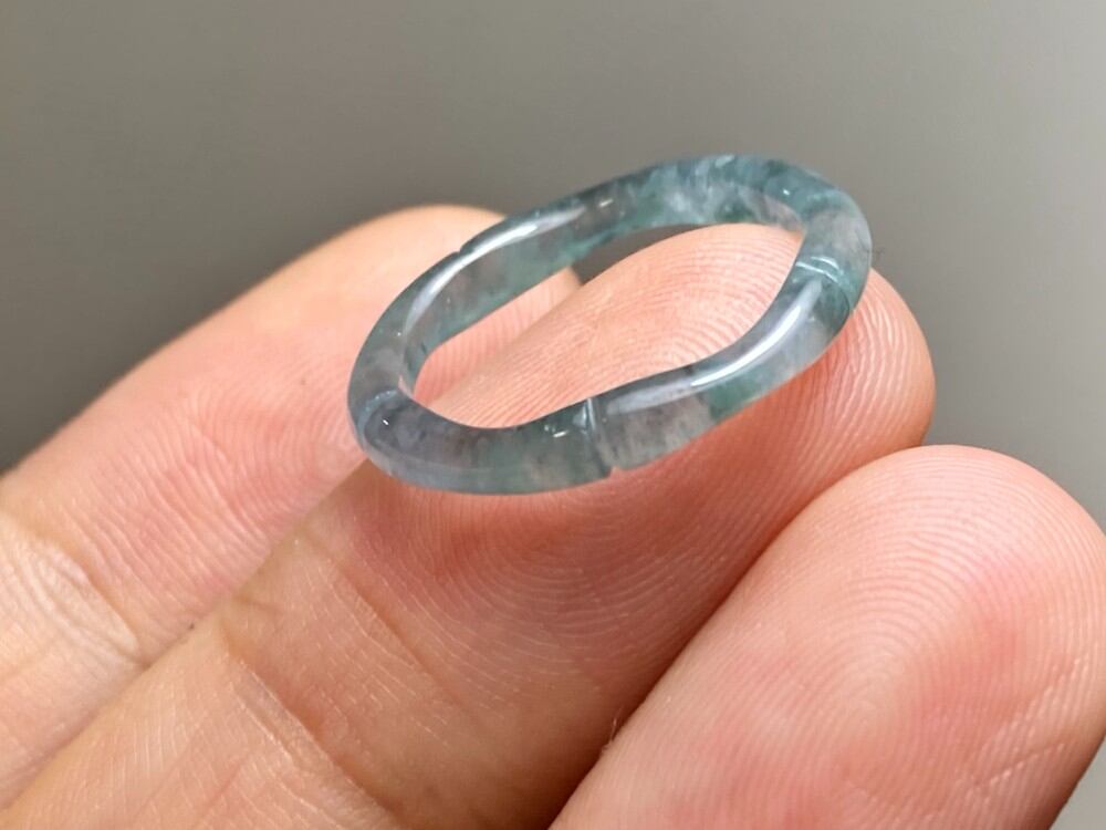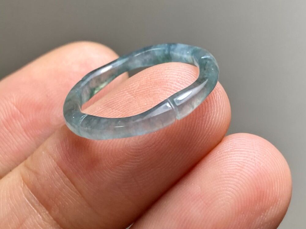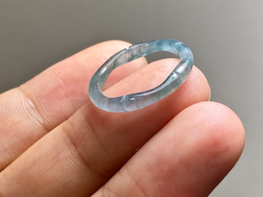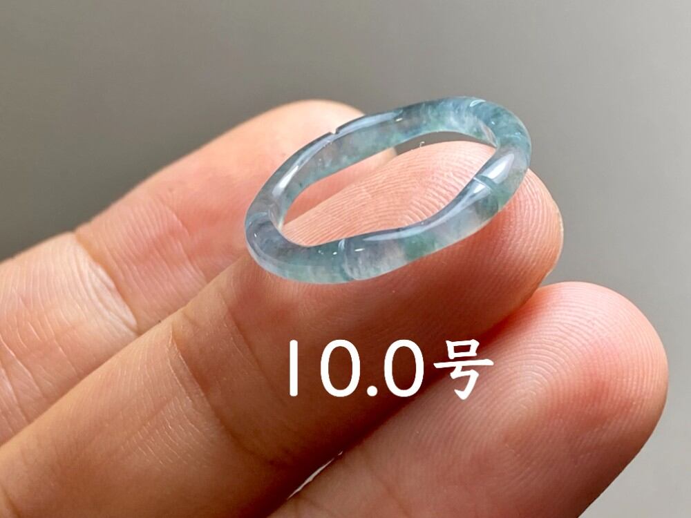 L13-52 ピンキーリング 高氷種 竹節 リング 水色飃青緑花 10.0号 グアテマラ産 A貨 本翡翠 くりぬき