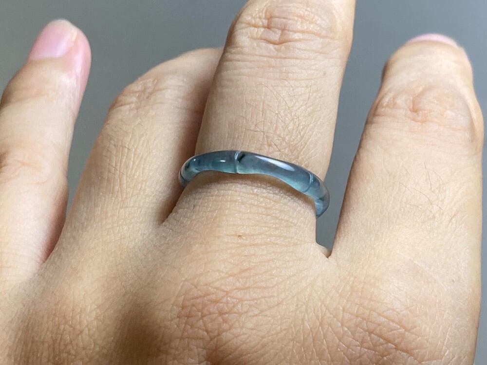 L13-51 高氷種 竹節 リング 水色飃藍花 15.0号 グアテマラ産 A貨 本翡翠 くりぬき