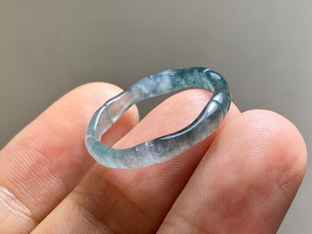 L13-60 竹節 リング 高氷種 青水色 18.0号 グアテマラ産 A貨 本翡翠 くりぬき