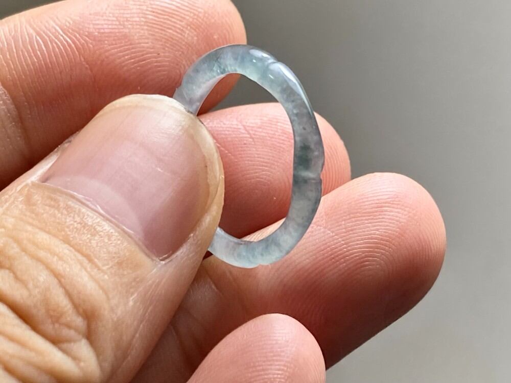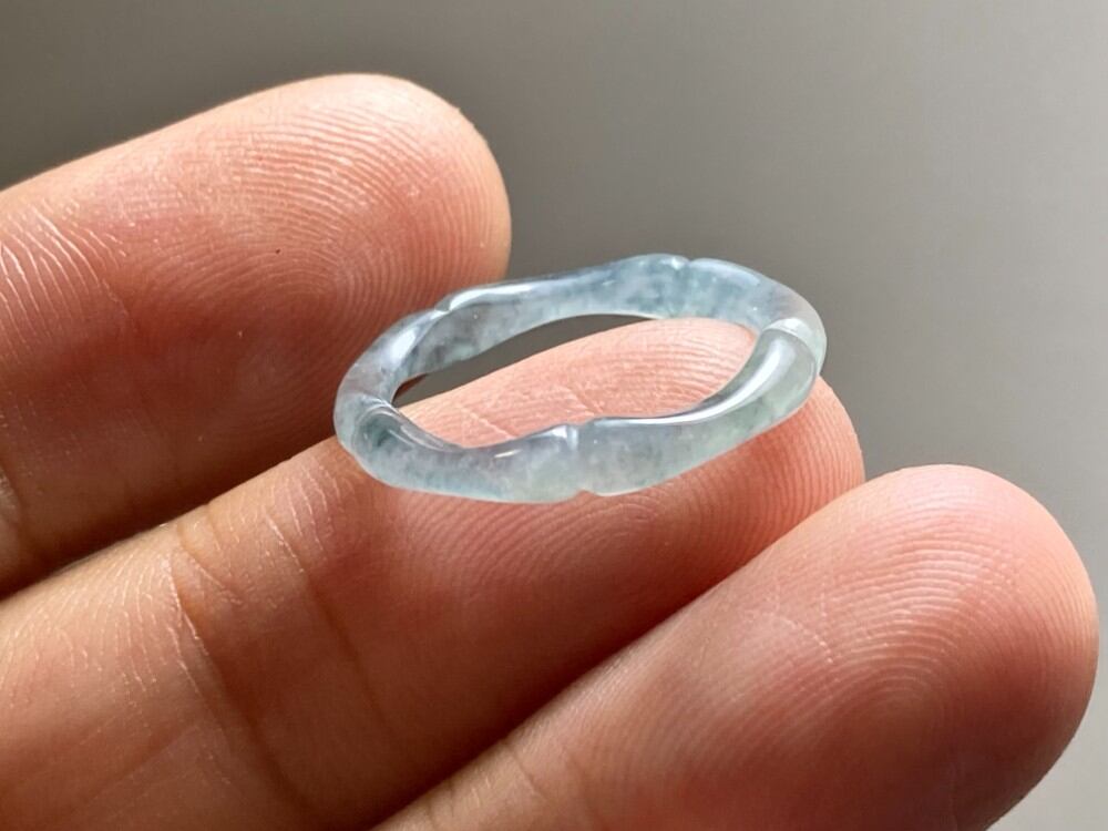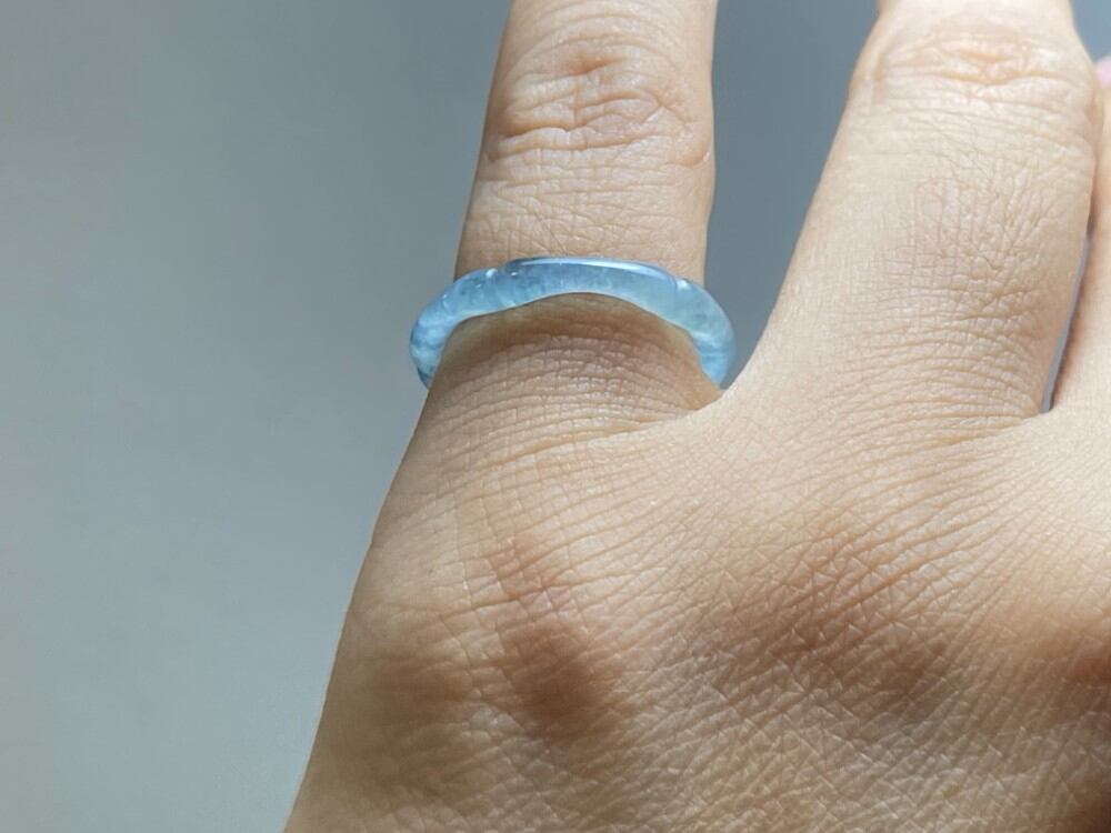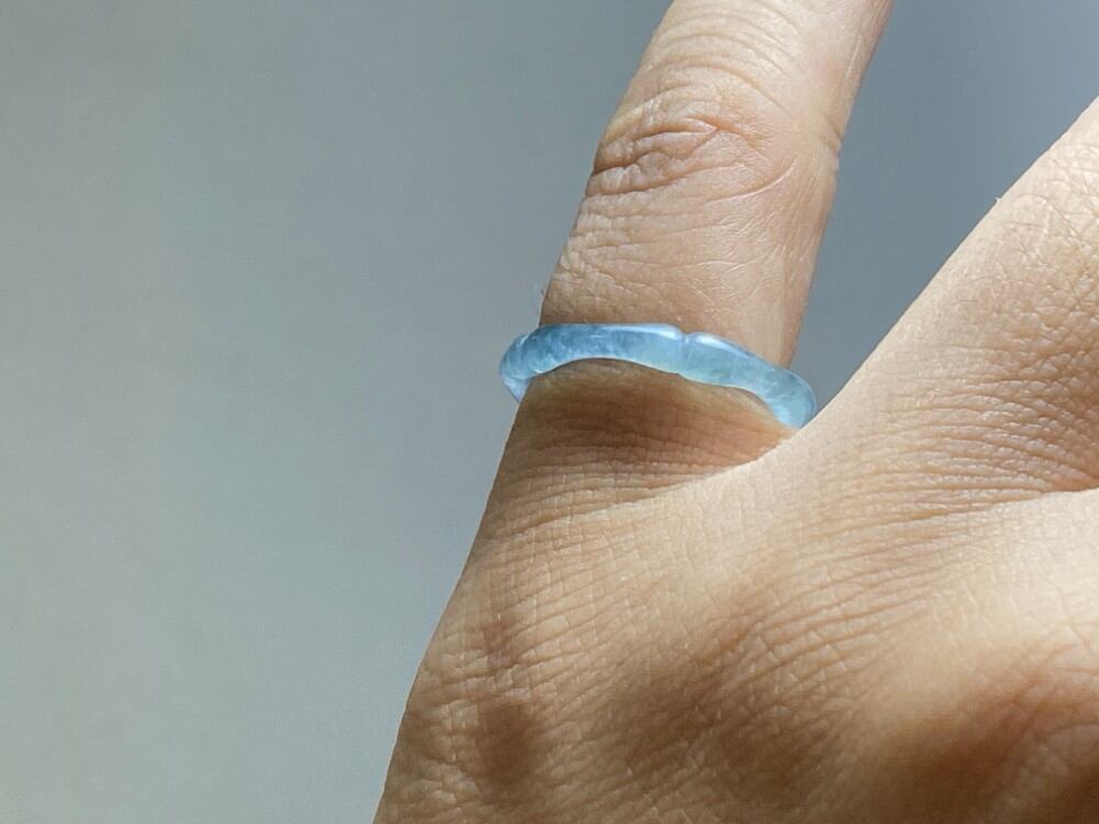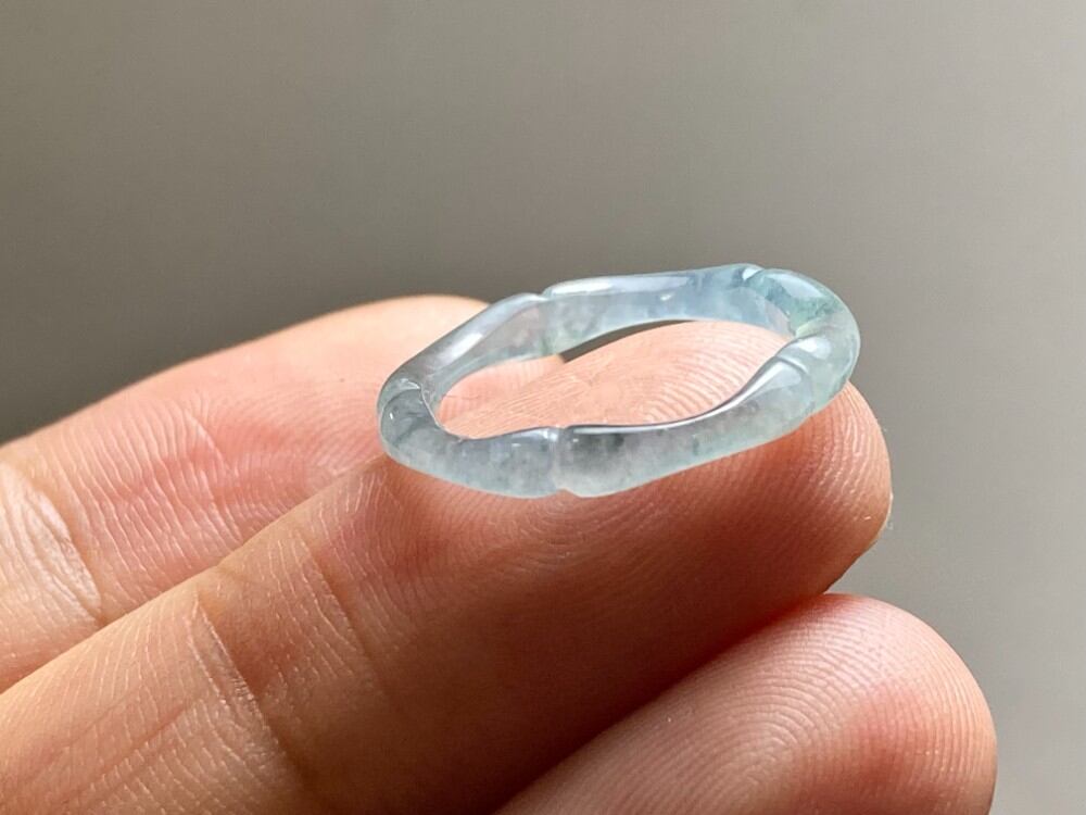 L13-62 ピンキーリング 氷種 竹節 リング 水色 7.0号 グアテマラ産 A貨 本翡翠 くりぬき