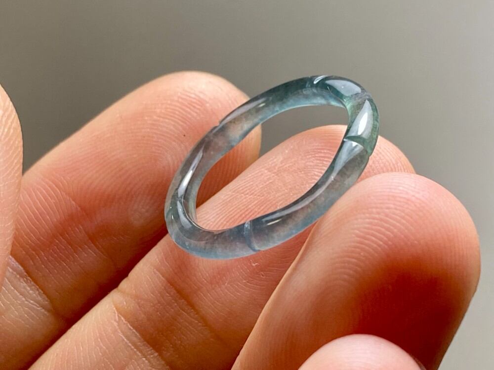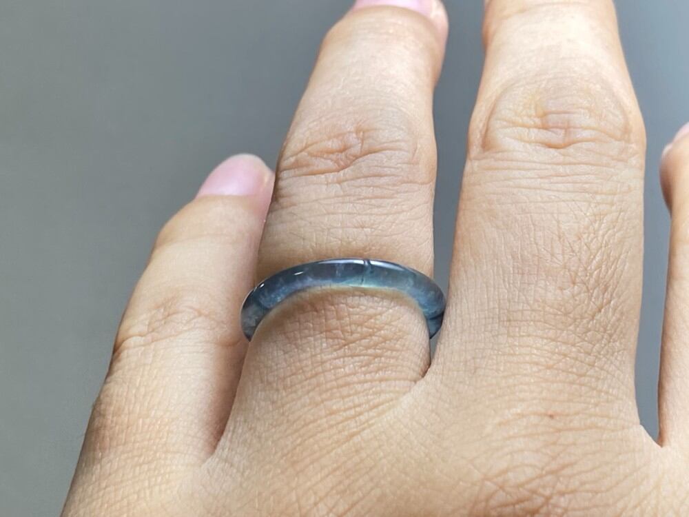 L13-57 ピンキーリング 高氷種 竹節 リング 紺色 9.0号 グアテマラ産 A貨 本翡翠 くりぬき