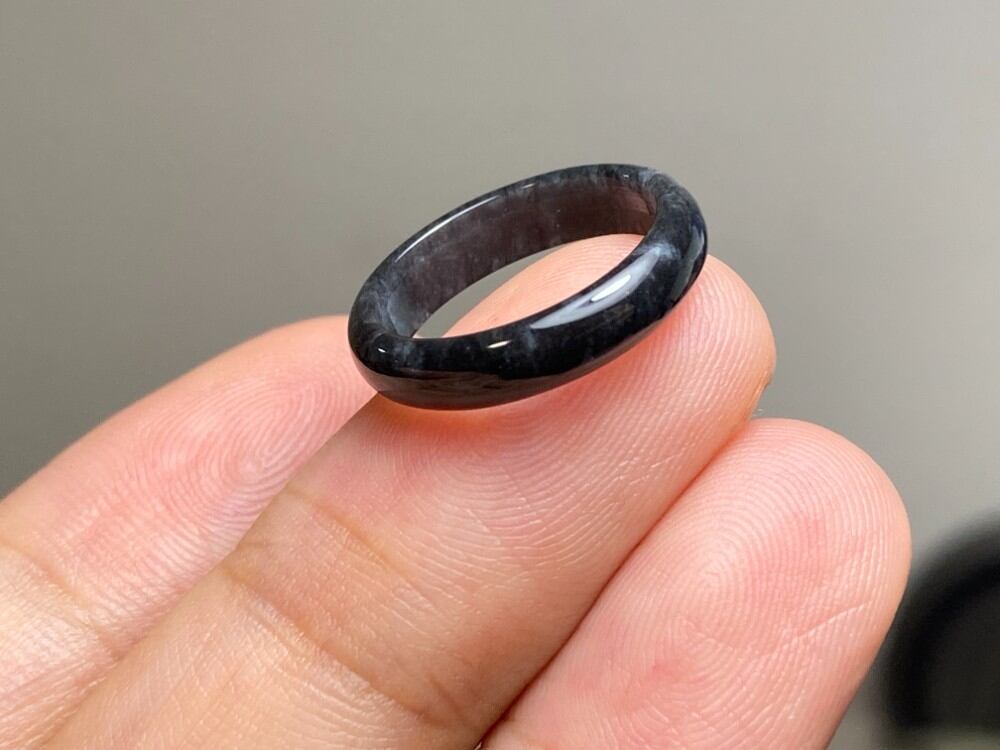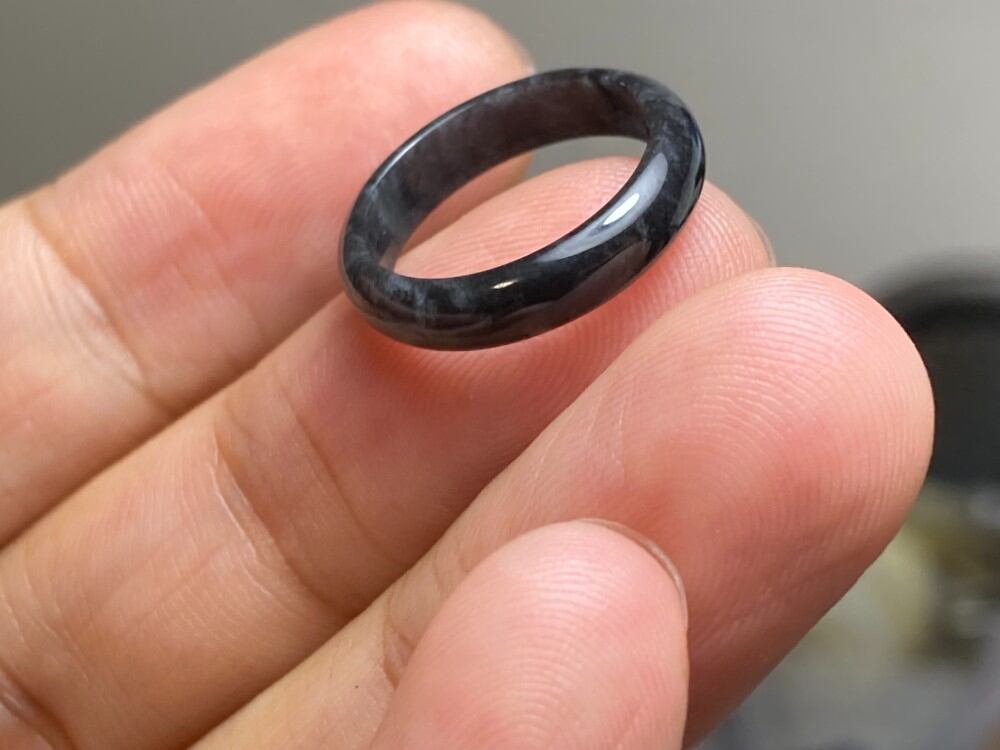 L13-73 ピンキーリング 糯種 黒翡翠 4.0号 グアテマラ産 A貨 本翡翠 くりぬき リング
