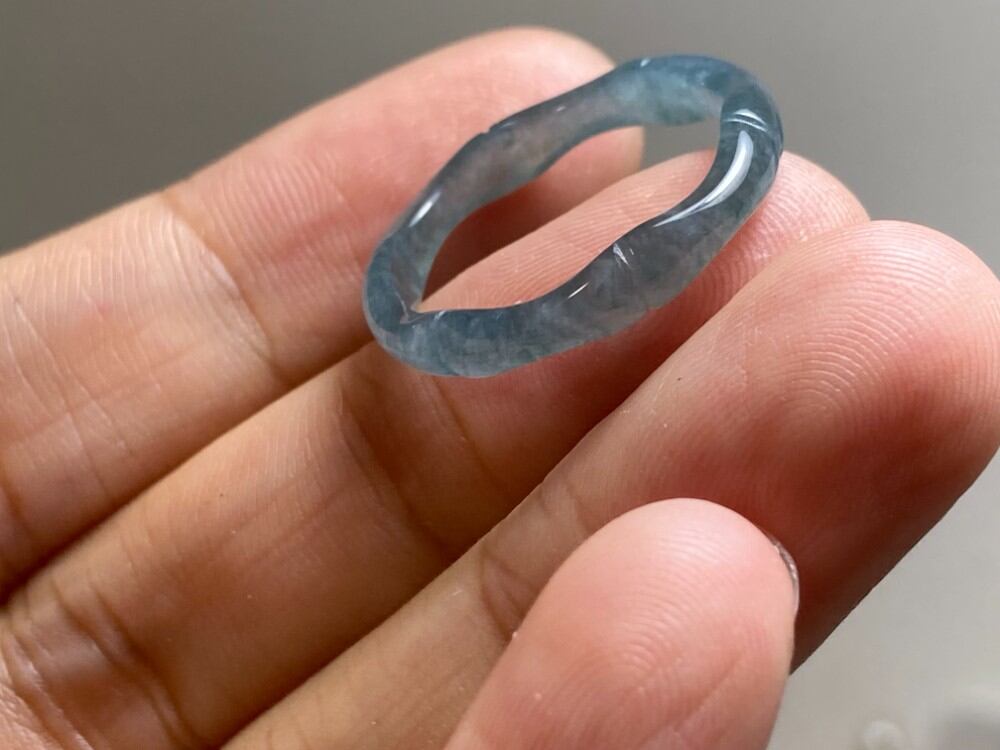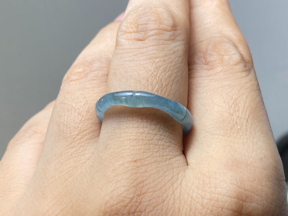 L13-78 氷種 竹節 リング 氷青 17.5号 グアテマラ産 A貨 本翡翠 くりぬき