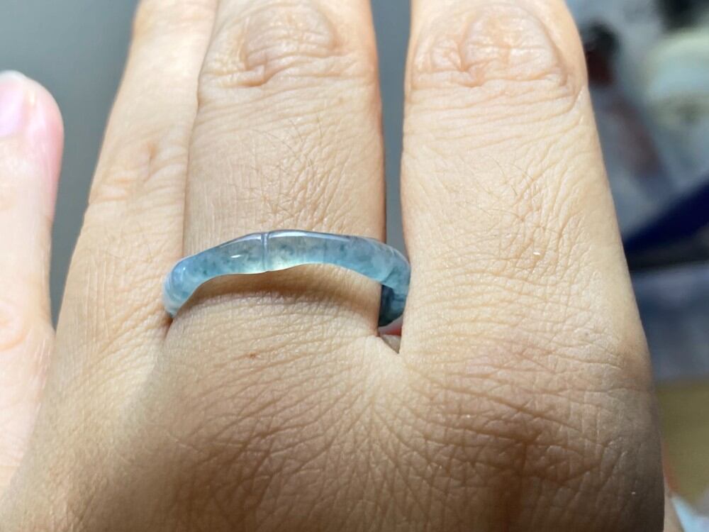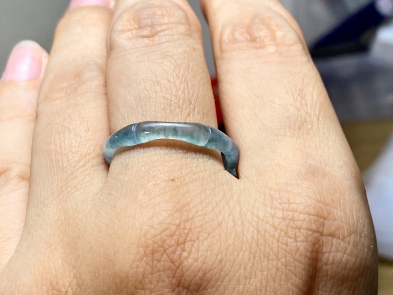 L13-79 高氷種 竹節 リング 氷青花 19.5号 グアテマラ産 A貨 本翡翠 くりぬき