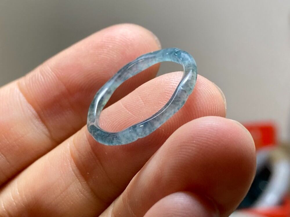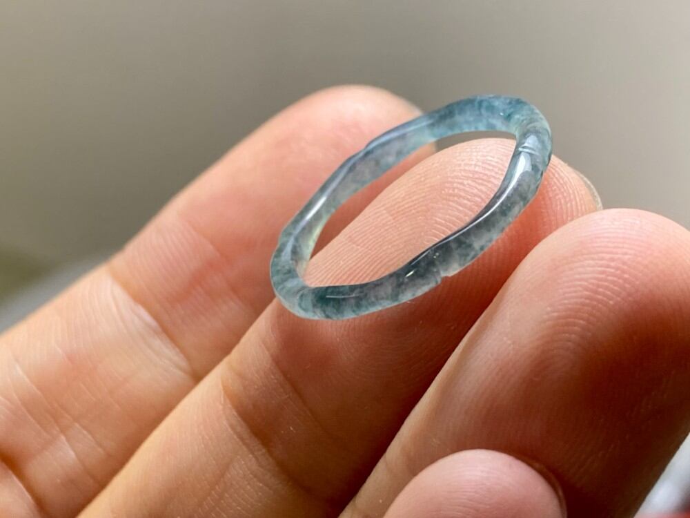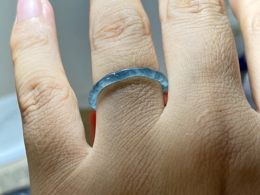 L13-85 細身 ピンキーリング 高氷種 竹節 リング 紺色 12.0号 グアテマラ産 A貨 本翡翠 くりぬき
