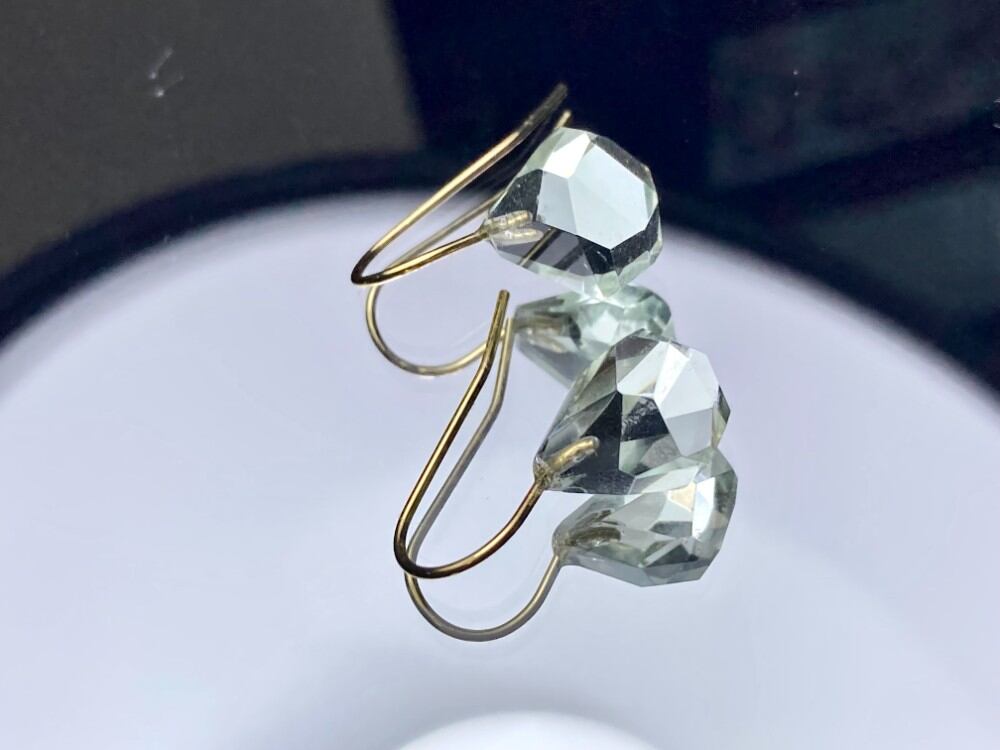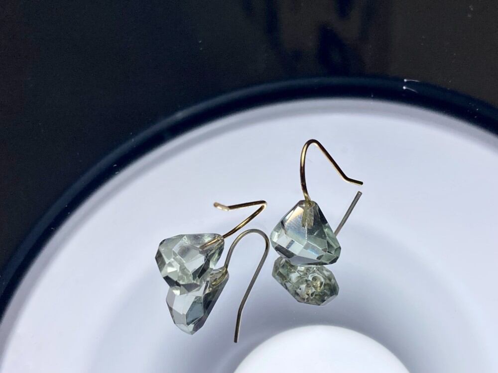 P27 一点物 希少石 天然 緑水晶 グリーン アメシスト ピアス 金属アレルギー対応