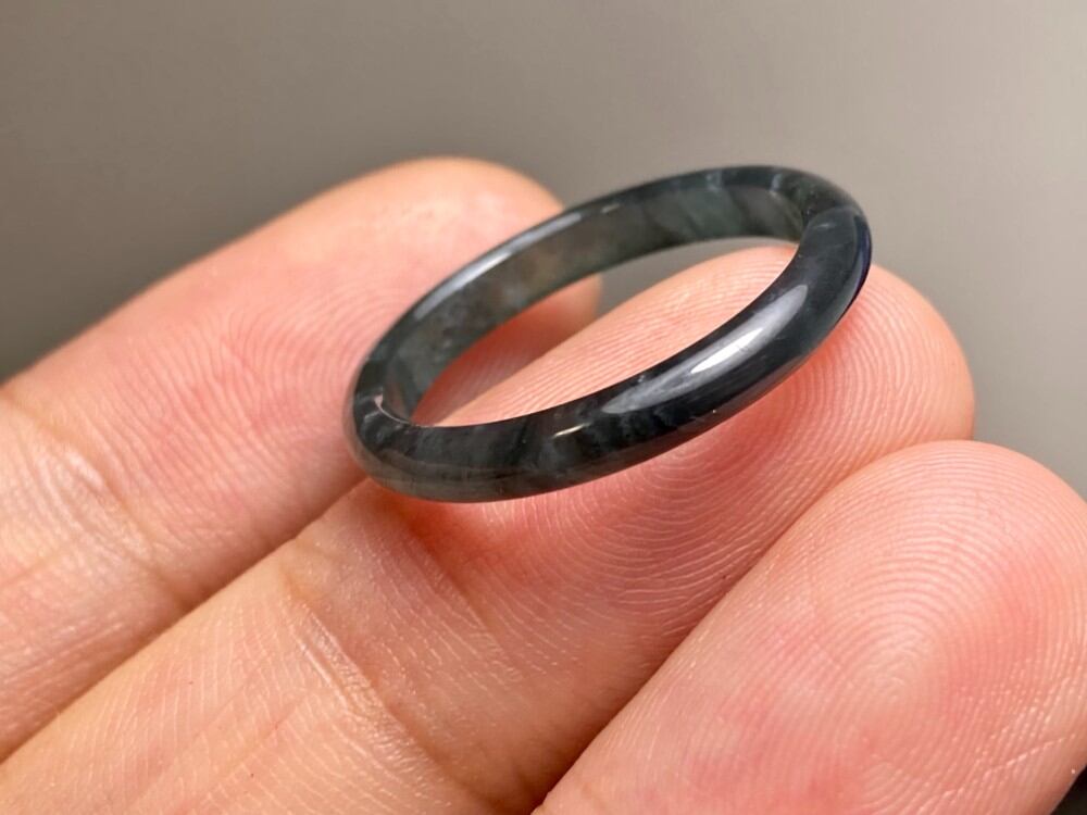 L13-89 氷糯種 黒翡翠 墨緑色 15.5号 グアテマラ産 A貨 本翡翠 くりぬき リング