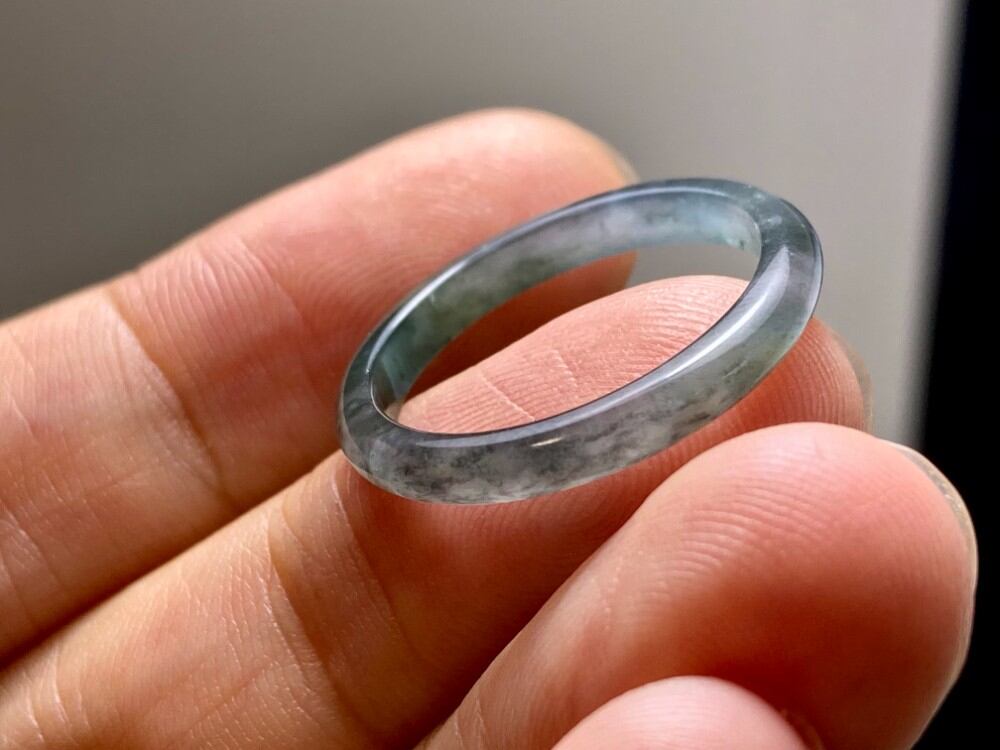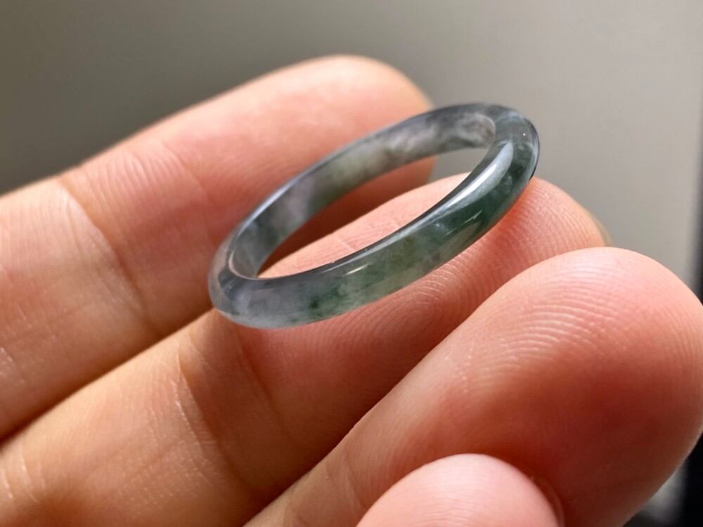 L13-94 氷種 高級感 煙灰〜墨緑翡翠 16.5号 グアテマラ産 A貨 本翡翠 くりぬき リング