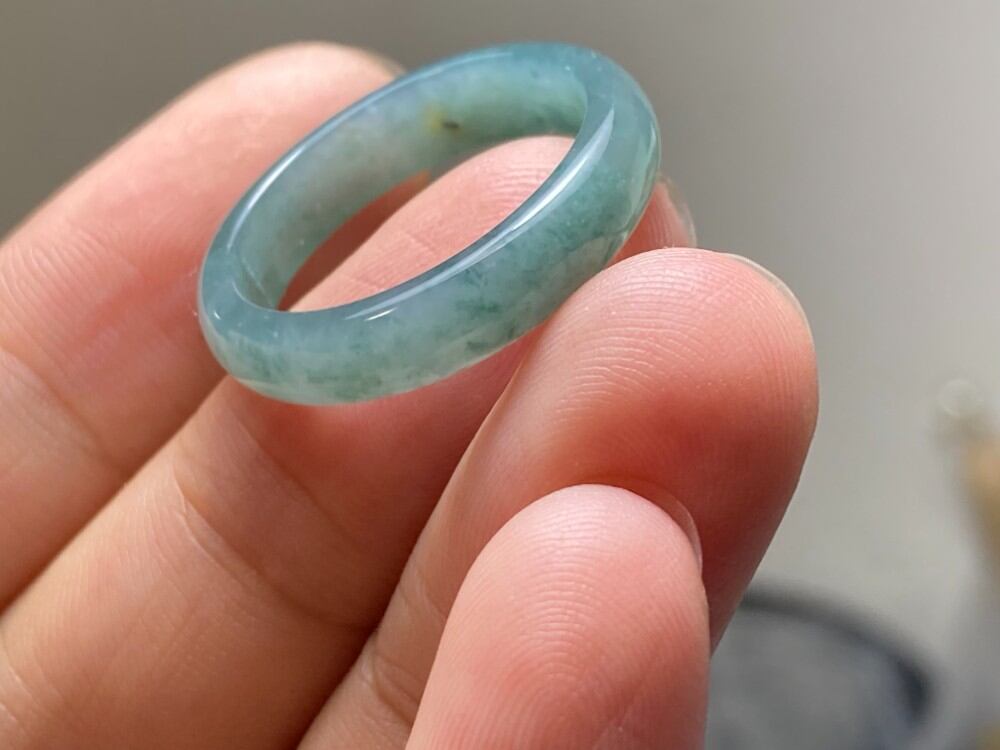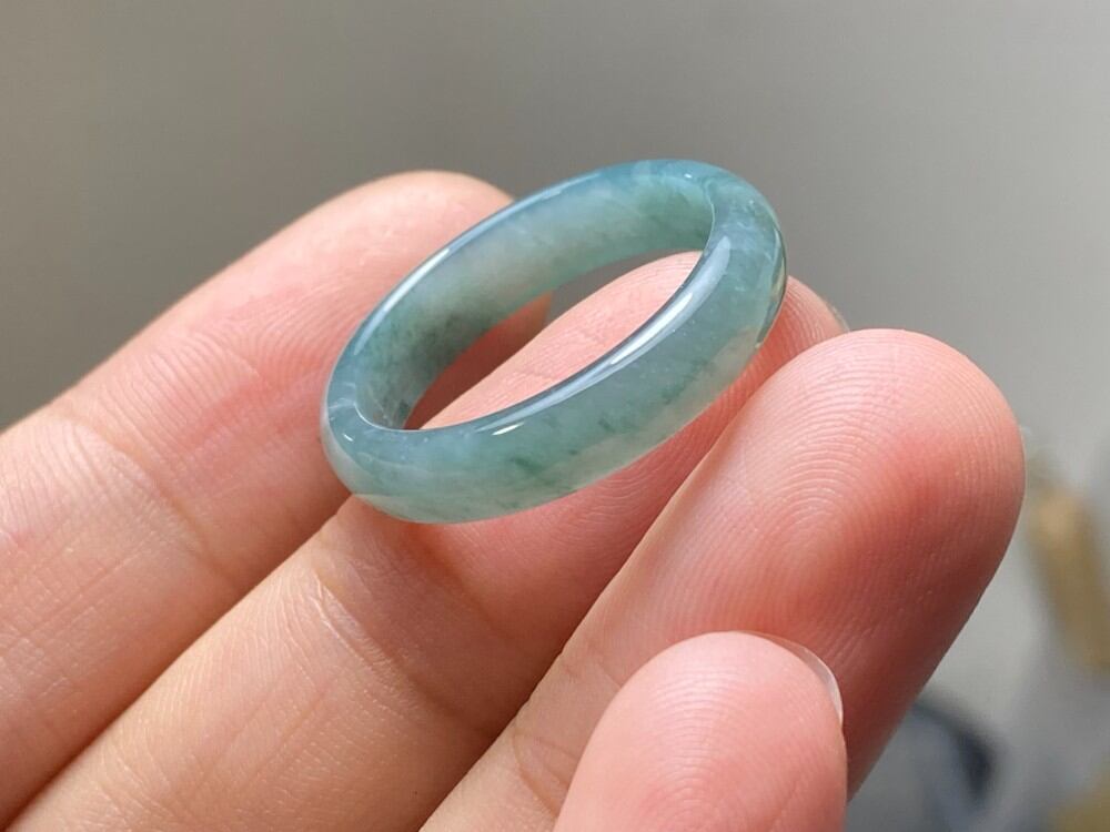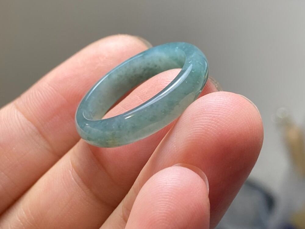 L13-98 氷糯種 青色 19.5号 グアテマラ産 A貨 本翡翠 くりぬき リング