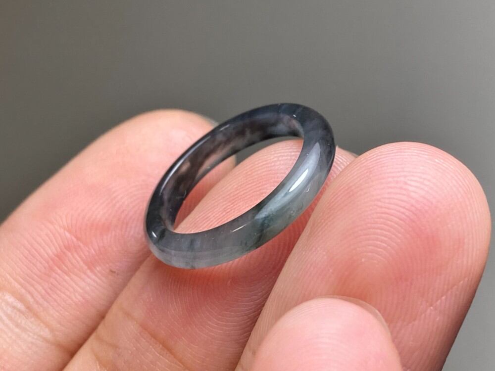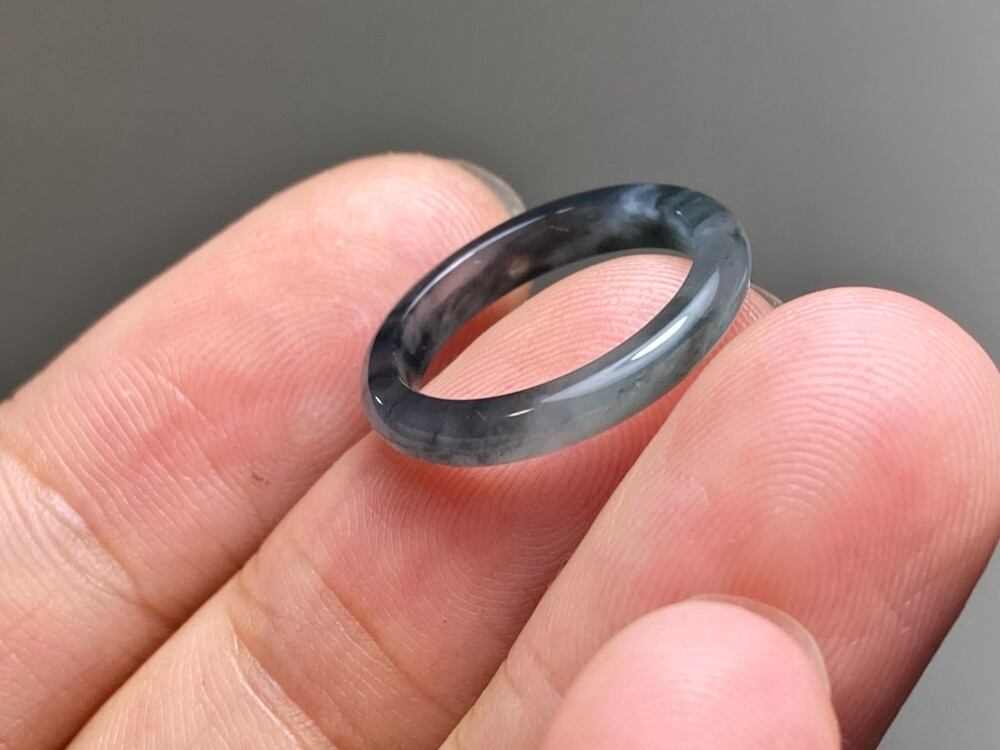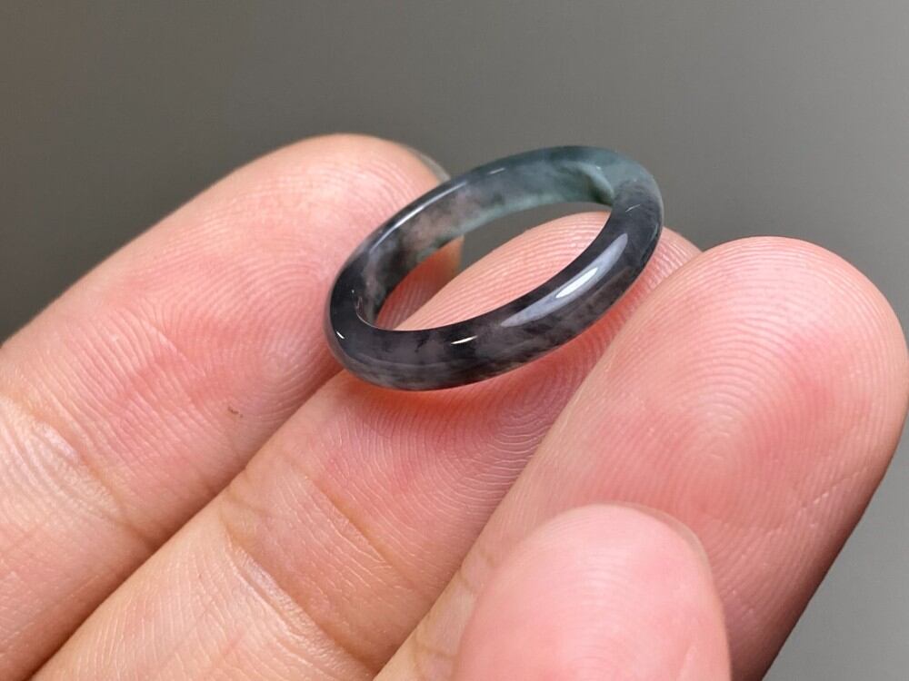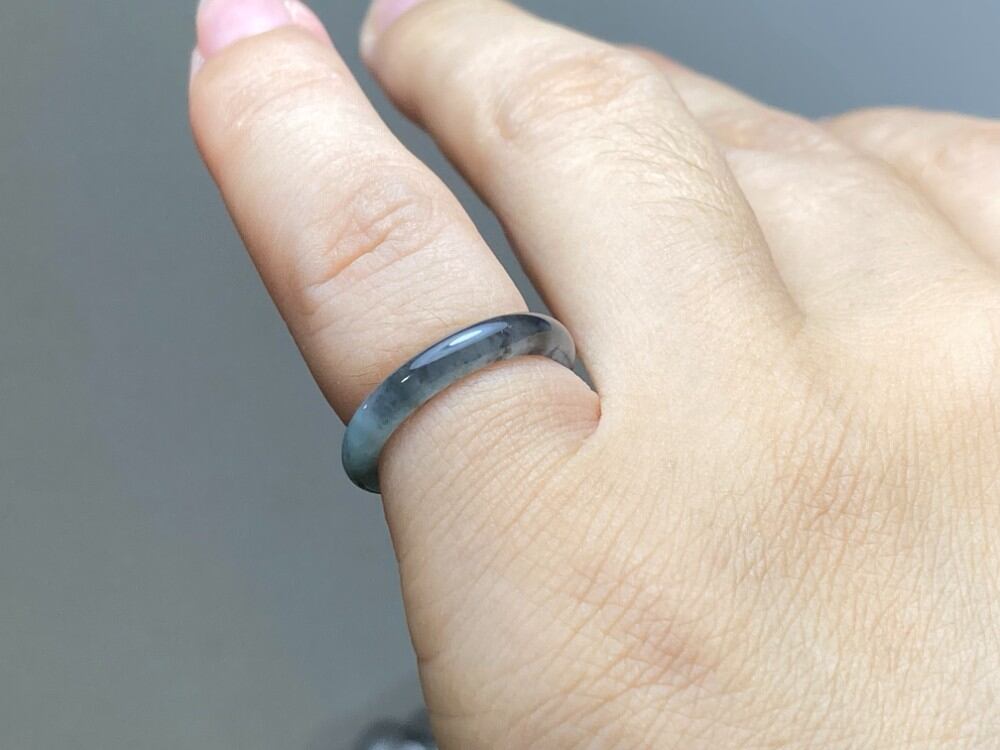 L13-97 ピンキーリング 氷種 高級感 煙灰緑〜黒翡翠4.5号 グアテマラ産 A貨 本翡翠 くりぬき リング