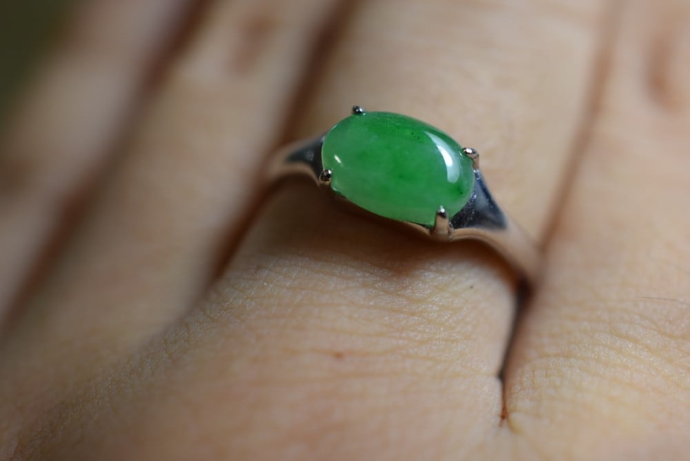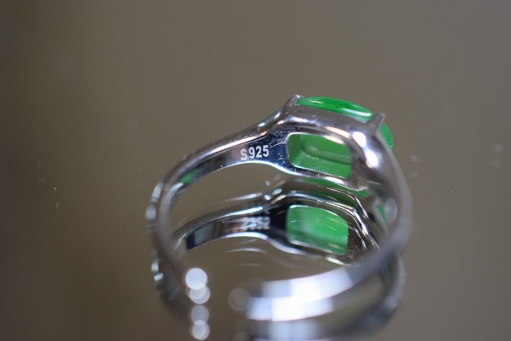 RG10-86 一点物 シルバー ミャンマー産 氷糯種 果緑 本翡翠 ヒスイ 指輪 フリーサイズ 金属アレルギー対応