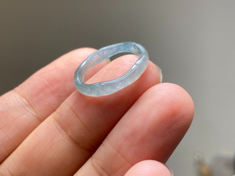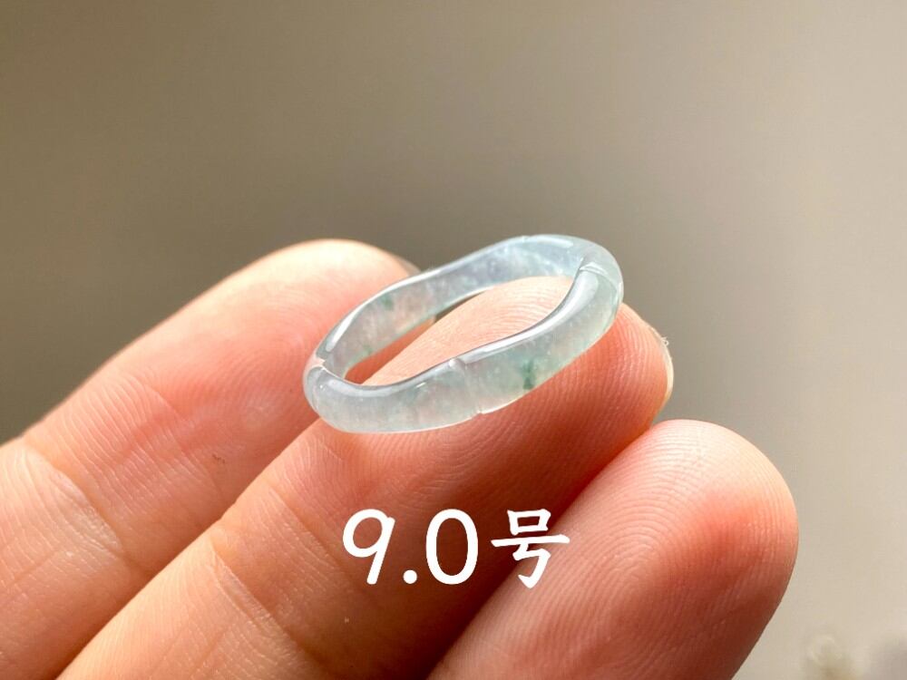 L13-102 ピンキーリング 氷種 竹節 リング 薄水緑色 9.0号 グアテマラ産 A貨 本翡翠 くりぬき