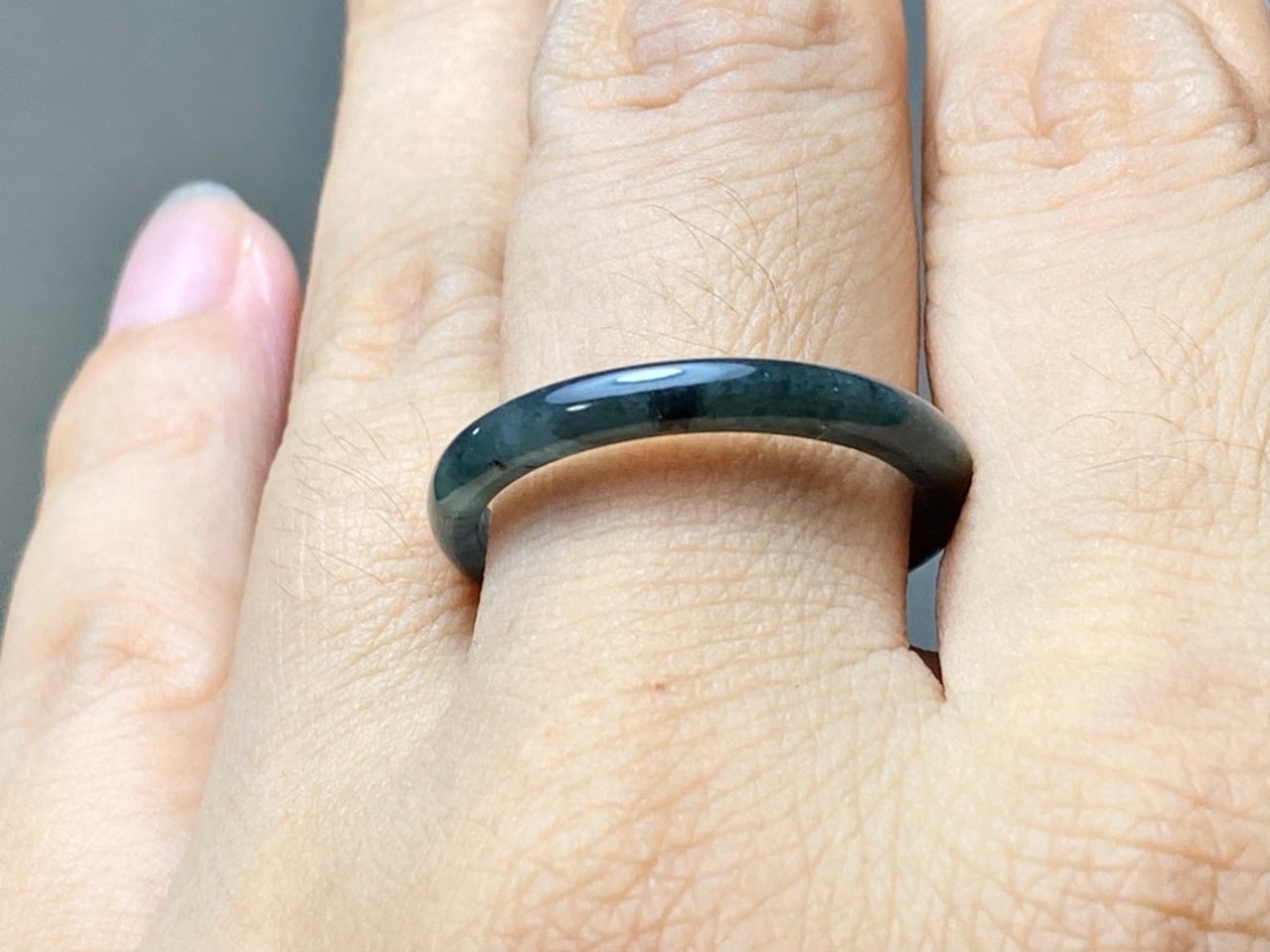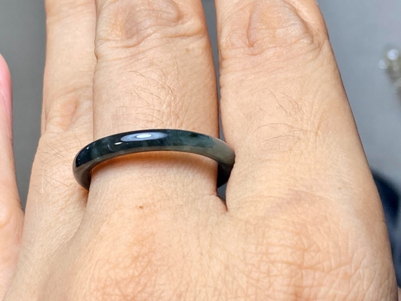 L13-114 細身 糯種 煙灰〜黒翡翠 21.0号 グアテマラ産 A貨 本翡翠 くりぬき リング
