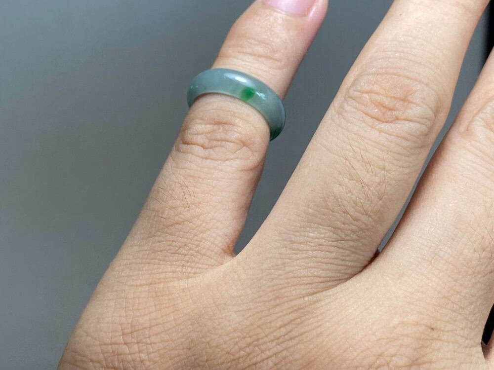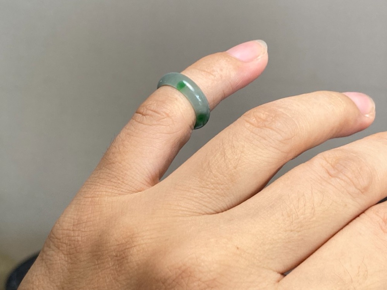 L13-123 ピンキーリング 氷糯種 青灰辣緑 1.5号 グアテマラ産 A貨 本翡翠 くりぬき リング