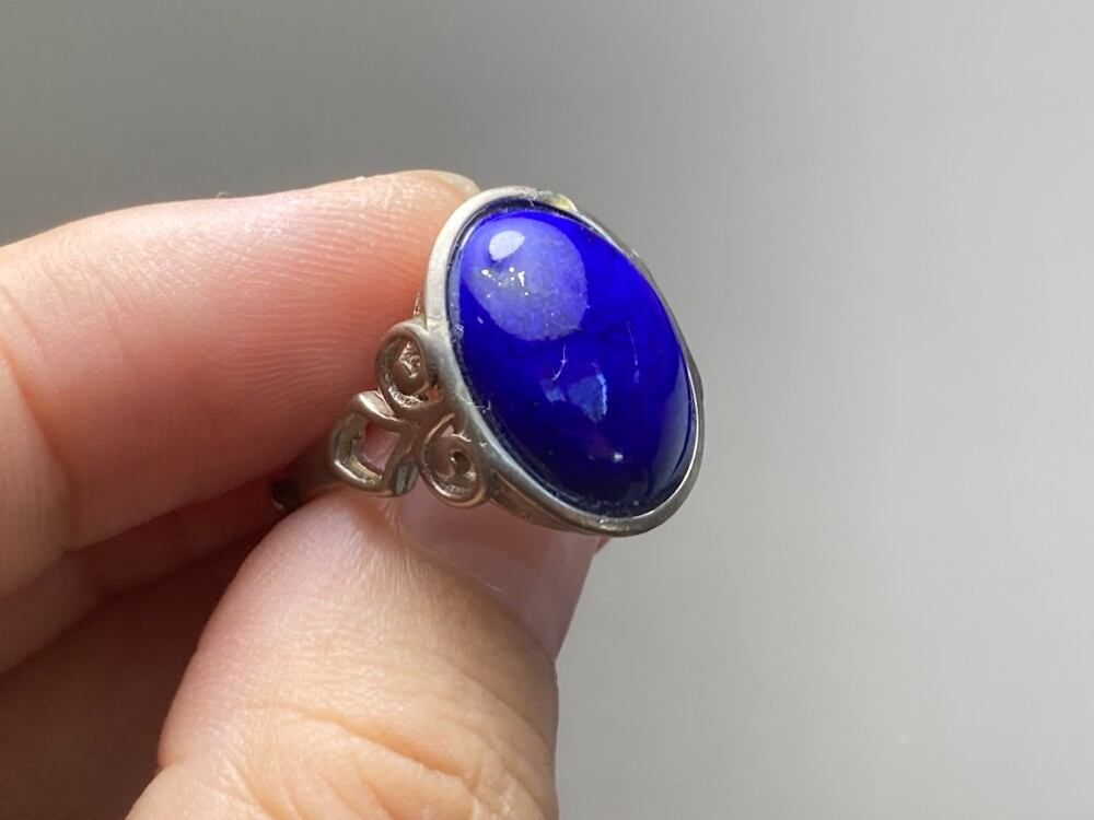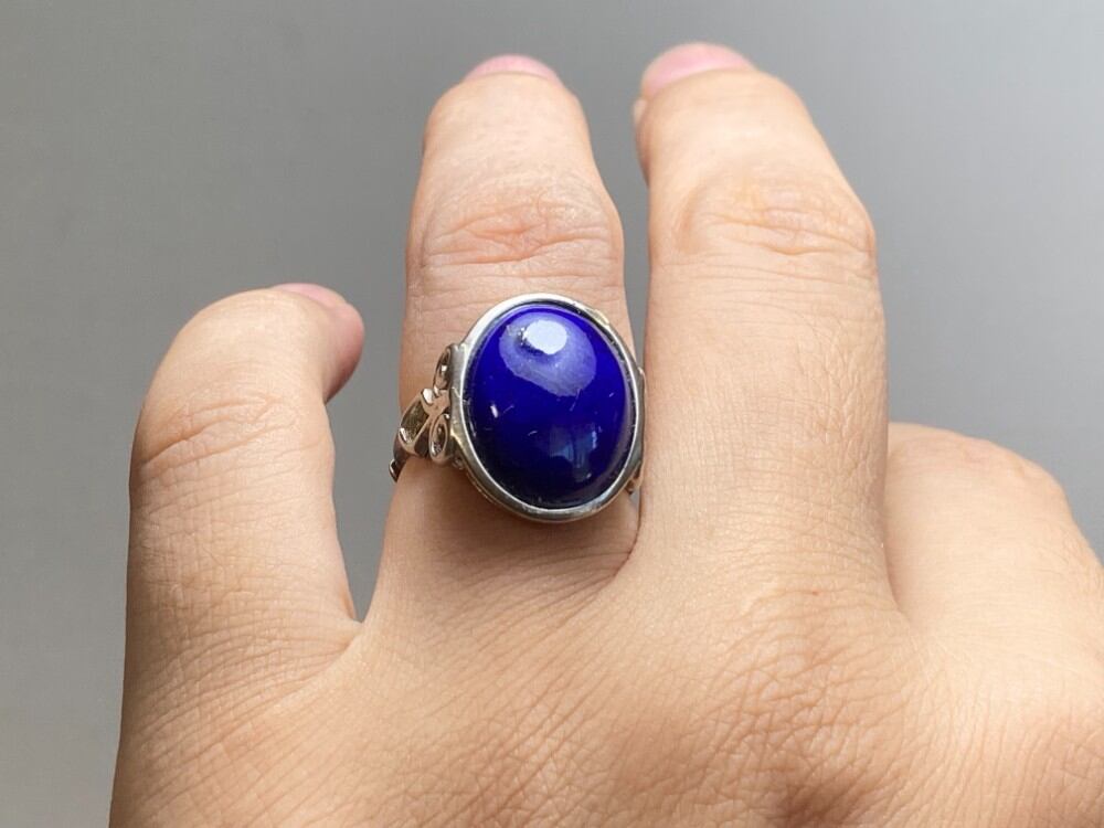 QJ2-16 シルバー 大粒 ラピスラズリ 青金石 リング 指輪 金属アレルギー対応