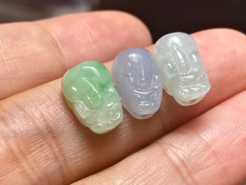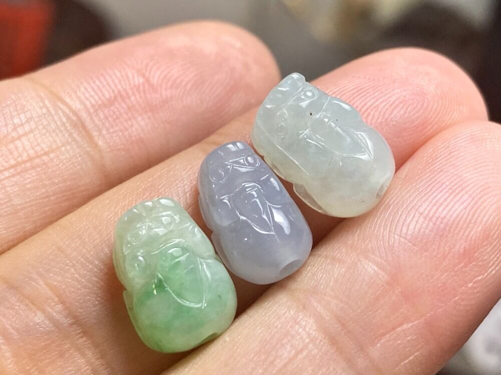 3点セット通穴 貔貅 本翡翠 ミャンマー産 A貨 財布貔貅 御守、一点物です