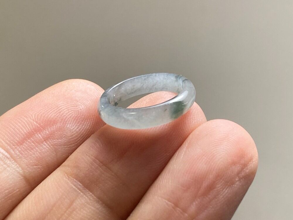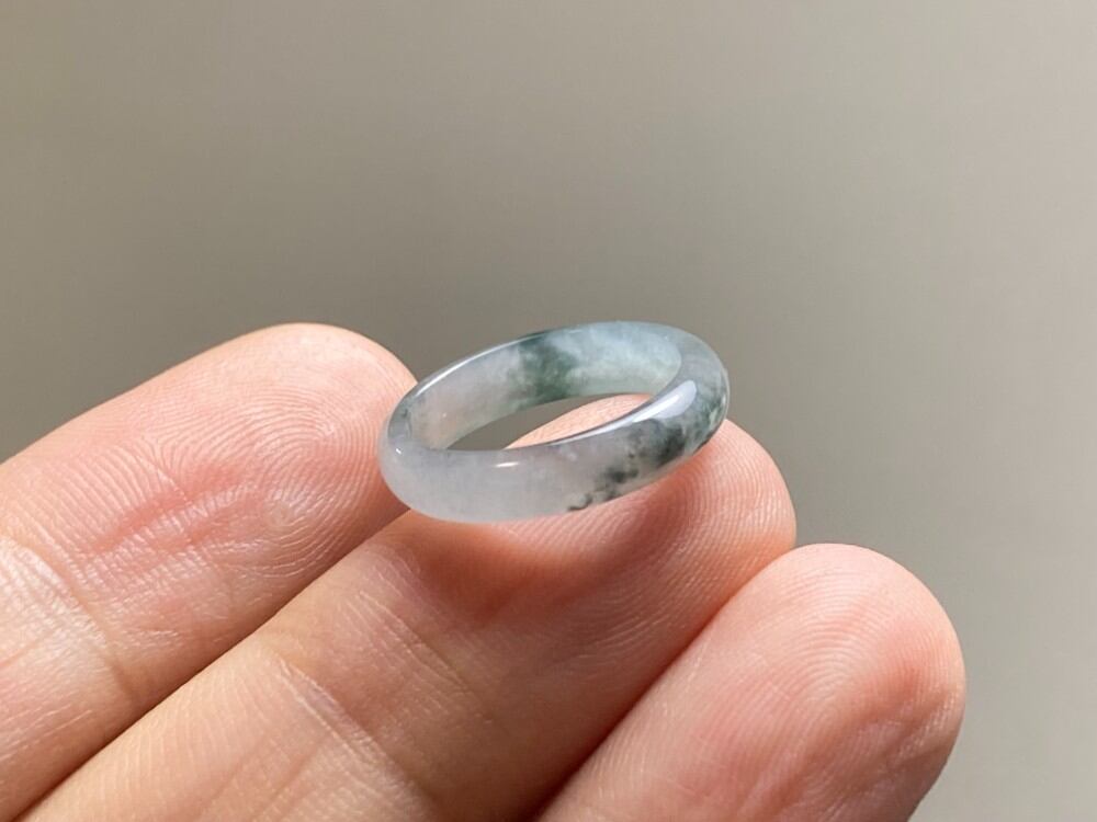 L13-145 ピンキーリング 氷糯種 薄灰白青花 3.0号 グアテマラ産 A貨 本翡翠 くりぬき リング