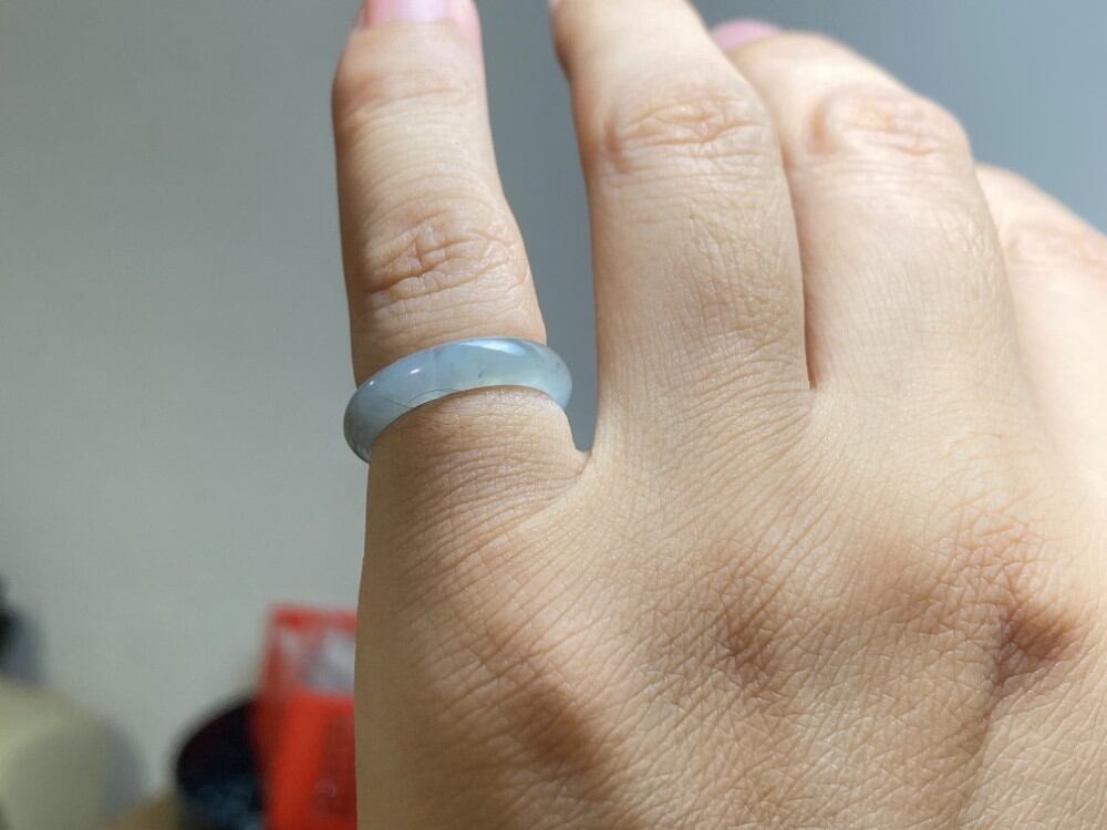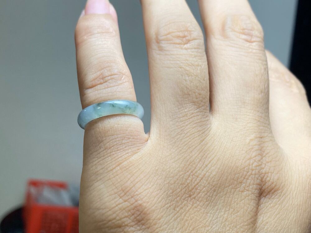 L13-147 ピンキーリング 氷糯種 薄灰白苔緑花 4.5号 グアテマラ産 A貨 本翡翠 くりぬき リング