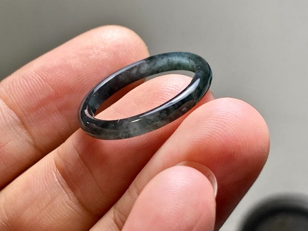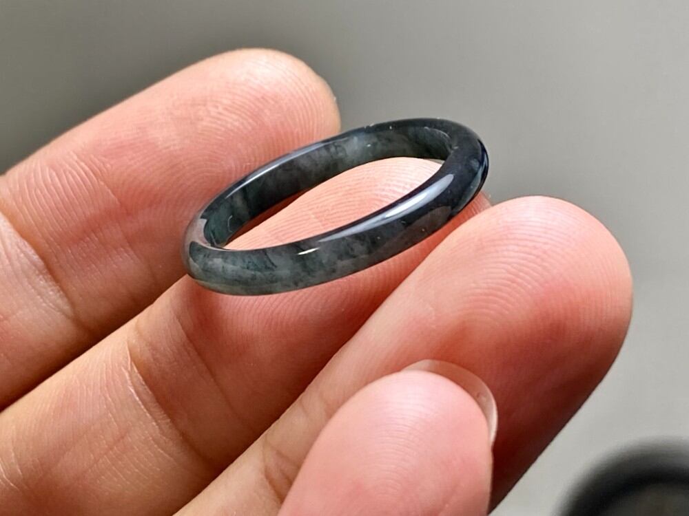 L13-150 細身 氷糯種 黒翡翠 16.0号 グアテマラ産 A貨 本翡翠 くりぬき リング